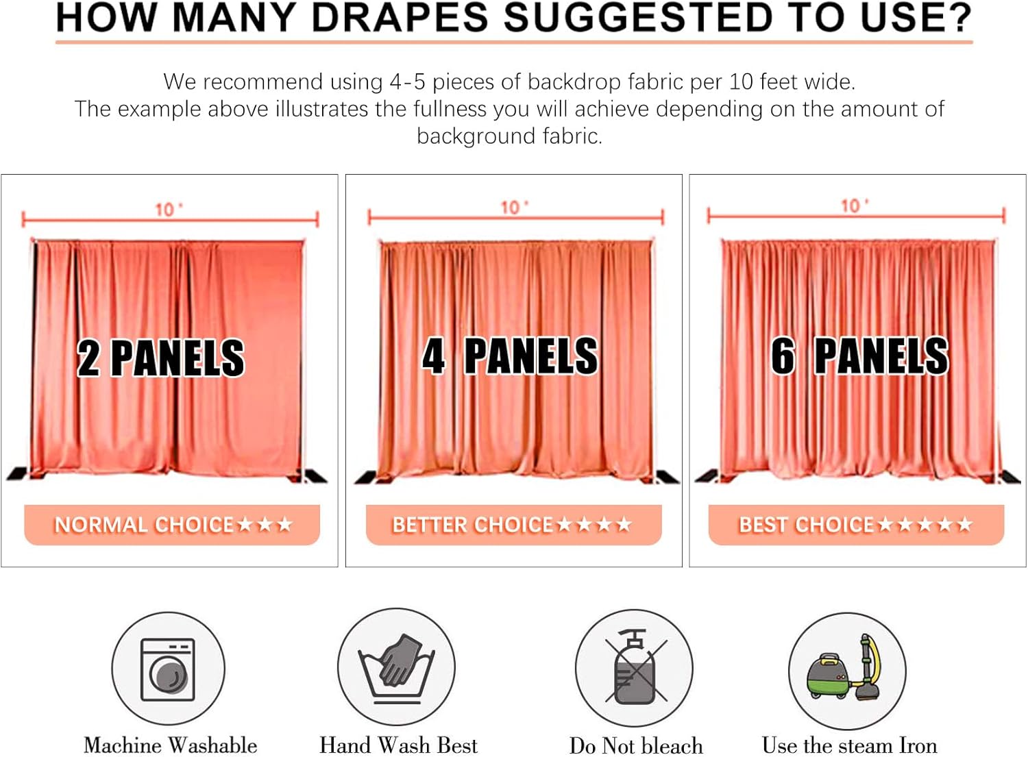 - 【Durable and easy to maintain】Backdrop curtain not only looks very delicate, but also very durable and can withstand frequent use and cleaning, both hand wash and machine wash is OK. Meanwhile, its easy to maintain nature also makes it an ideal choice for users. For ease of transportation the background curtain has been compressed by a vacuum, there will be obvious creases, which is normal.