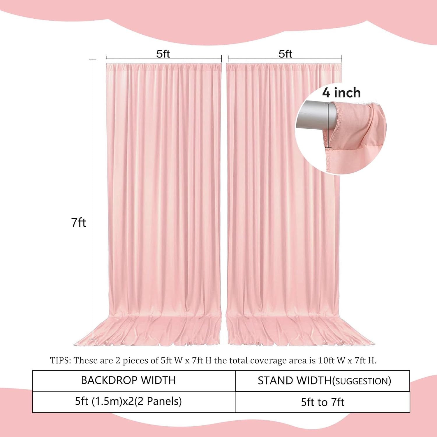 2 Panels Light Pink Backdrop Curtain, 10 x 7 Feet Background Curtains for Parties, Weddings, Baby Showers, Bachelorette Halloween, Christmas Birthday Party Photoshoot Backdrop Curtains Decorations