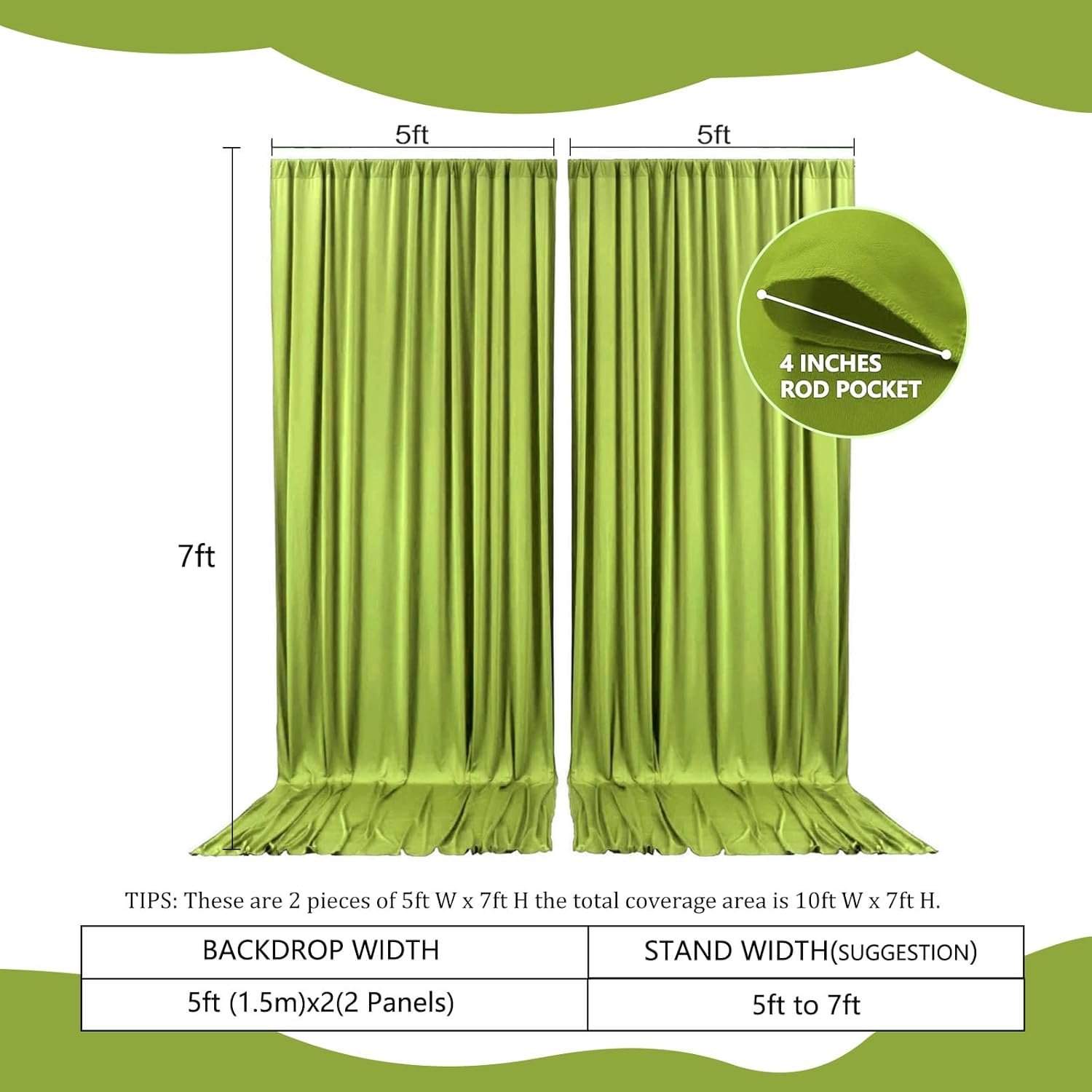 2 Panels Olive Green Backdrop Curtain, 10 x 7 Feet Background Curtains for Parties, Weddings, Baby Showers, Bachelorette Halloween, Christmas Birthday Party Photoshoot Backdrop Curtains Decorations