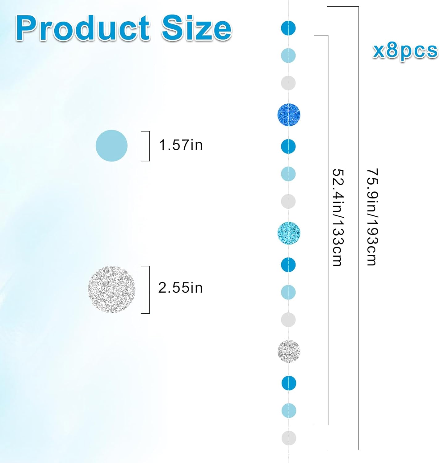 8 Pack Blue Glitter Dot Garland, Hanging Circle Streamers Banner, Backdrop Hanging Decorations for Baby Showers, Weddings, Birthday Parties, Winter Celebrations, and Holiday Decorations