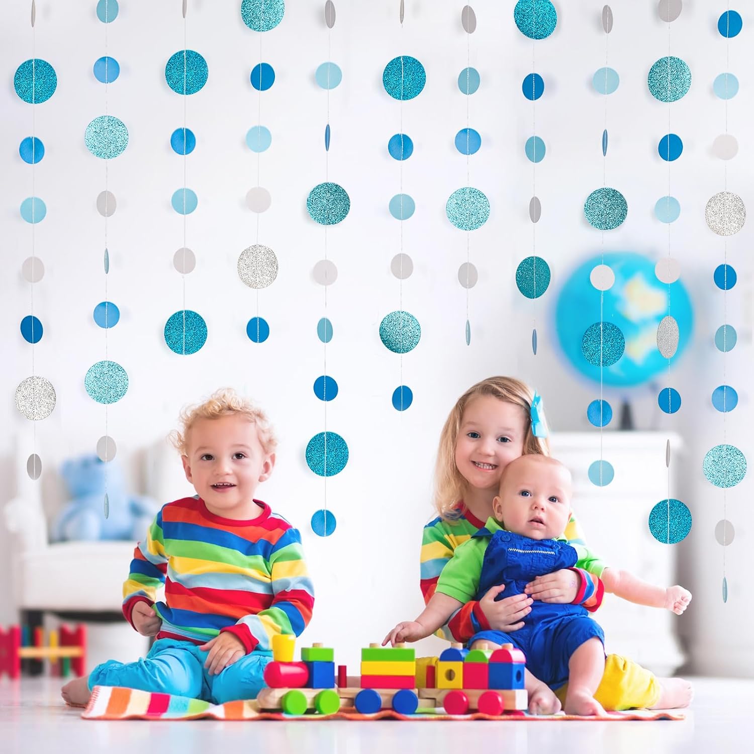 - 【Elegant & Versatile Blue Decor】 Bring a soft and sophisticated touch to your special occasions with our Blue Glitter Dot Garland. Perfect for baby showers, weddings, winter celebrations, birthdays, and holiday parties, this garland adds a stylish and festive flair.