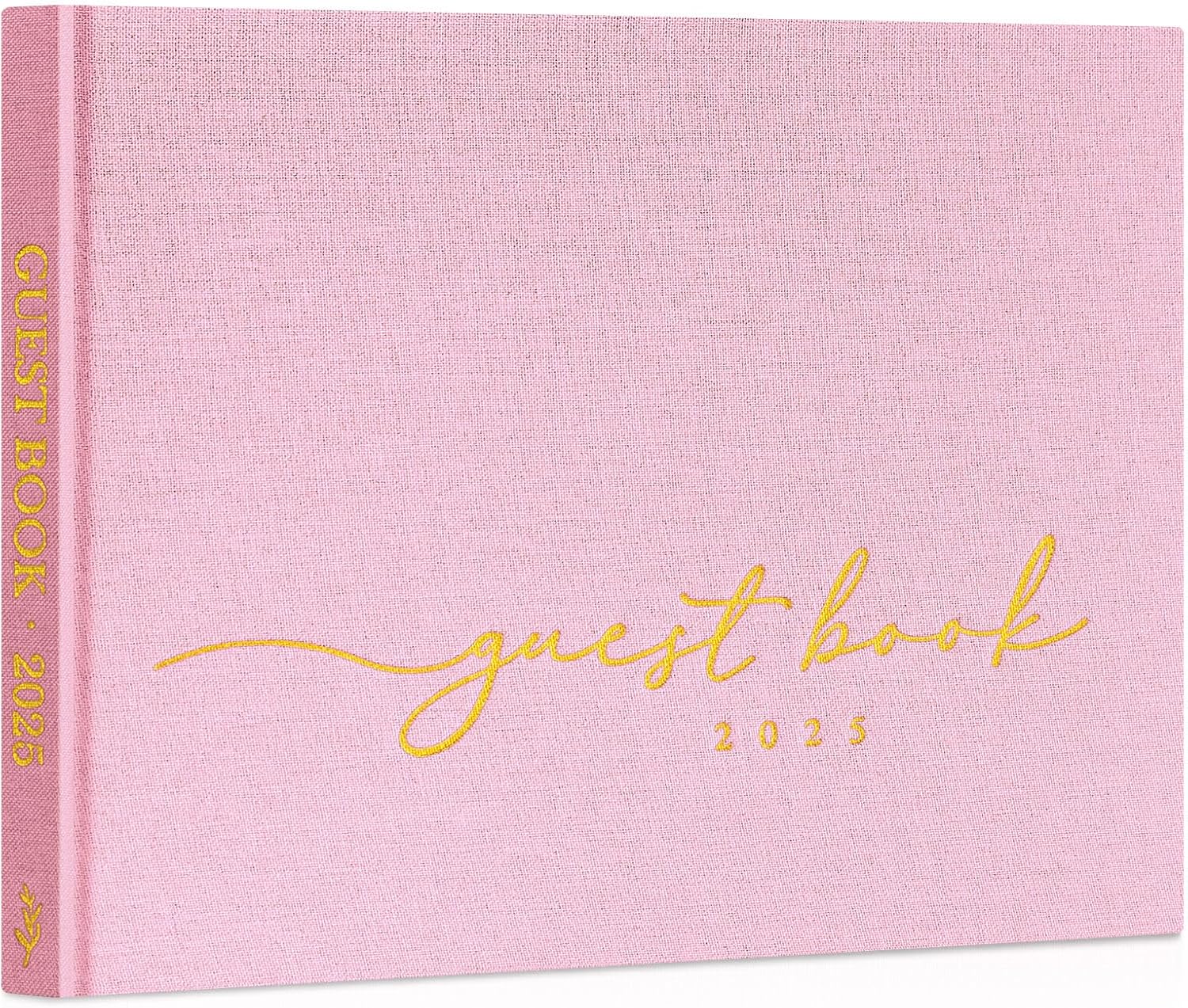 Lanpn Wedding Guest Book 2025 - Linen Hardcover Polaroid Guestbook Wedding Reception with 108 Blank Pages for Sign in and Photos - Guest Book for Wedding Bridal Shower Baby Shower Party (Pink)