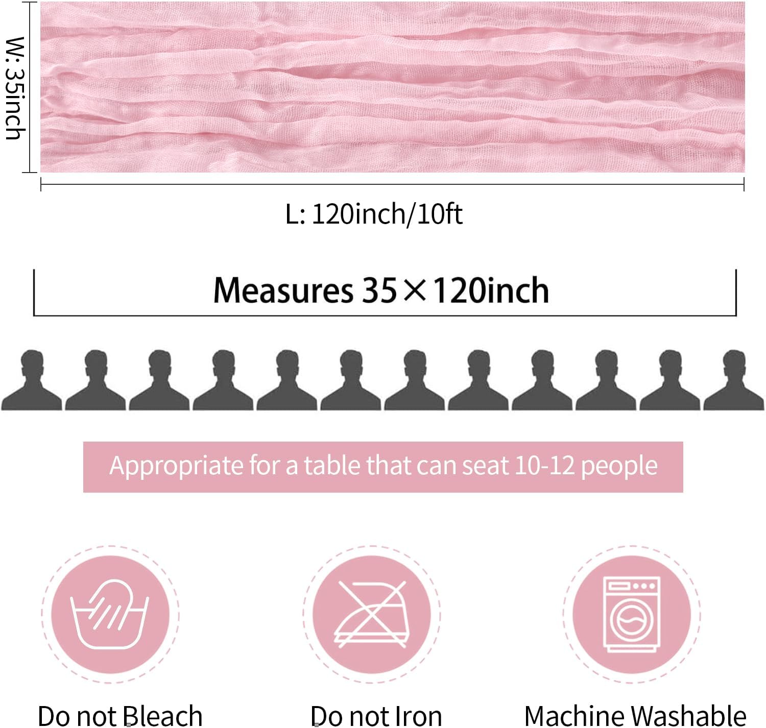 - 🌸3 Pack Cheesecloth Table Runner: You will get 3 pieces 10ft pink cheese cloth table runner, enough quantity is suitable for wedding banquets ,baby shower, various parties or other event, the size of each table runner is approximately 35 x 120 inches / 90 x 305 cm, which is large enough to cover rectangle and round tables, can also be spliced together for long tables. Even can be used for chair cover sashes or decorative napkins, backdrop draping or even gift wrapping or mostly anything table runners.Easy way to add texture to table decor and you can stretch and smooth them out as much as you'd like.