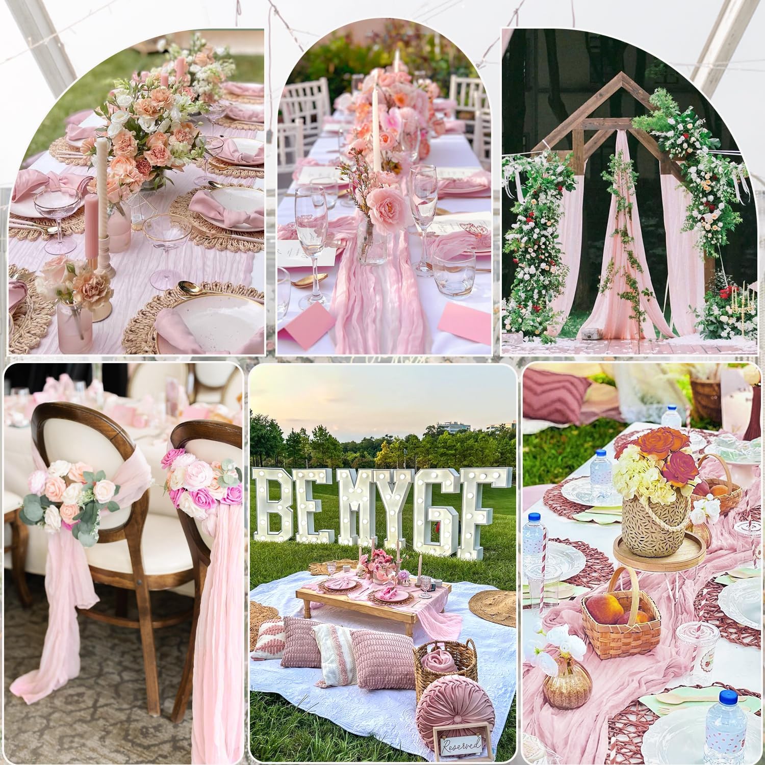 - 🌸Widely Occasion: Our light pink cheesecloth table runner looks nice on various occasions, Such as weddings, parties, graduation parties, wedding receptions, wedding showers, rustic themed parties, dinner events, wedding arches, rooms, hobo decorations, receptions, valentine's day, thanksgiving, christmas, dessert tables, western elegance themes, fundraisers, backdrops, wedding guest tables, celebrations of life, fenced and mirrored corners, stumps or vase decorations and other special occasions. The pretty table runner well decorates wedding, parties, home, hotel,grand estates and gardens and more, that makes your life chic.