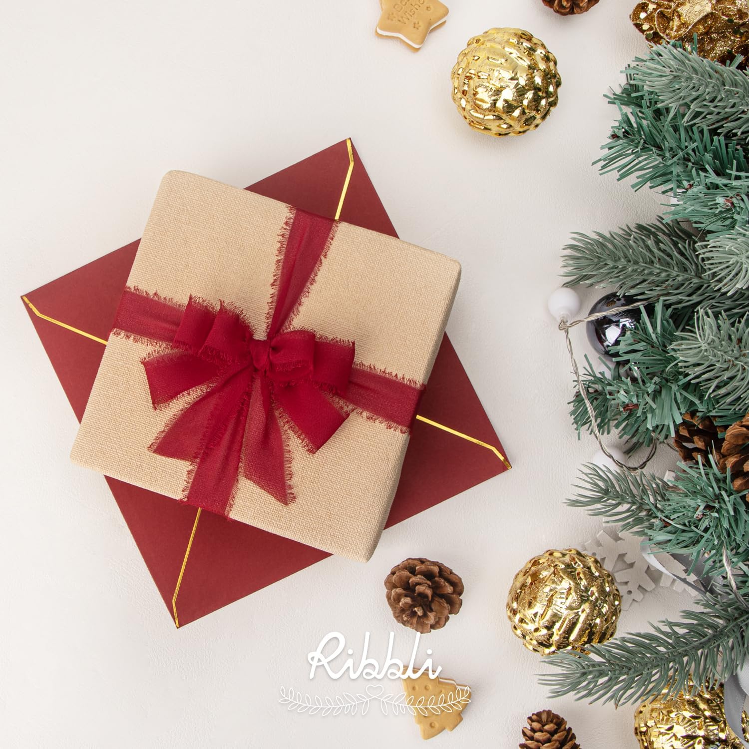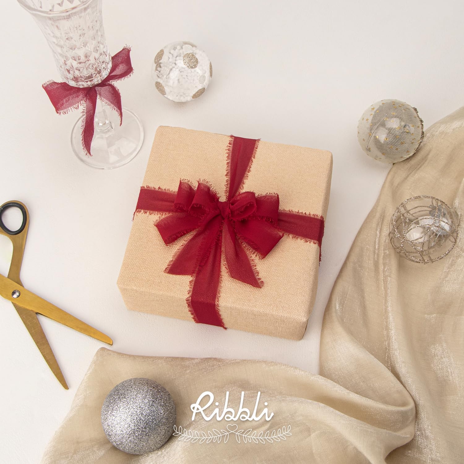 Ribbli Dark Red Ribbon 1 Inch x 3 Rolls Total 24 Yards Handmade Fringe Chiffon Silk Ribbon for Wrapping Wedding Invitations Bridal Bouquets DIY Crafts Home Decor