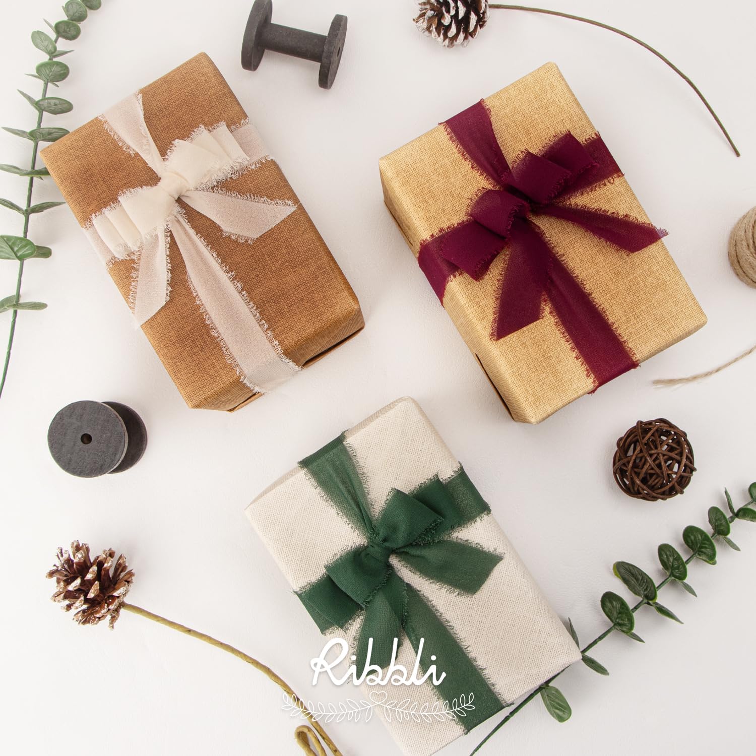 Ribbli Forest Green Ribbon 1 Inch x 3 Rolls Total 24 Yards Handmade Fringe Chiffon Silk Ribbon for Wrapping Wedding Invitations Bridal Bouquets DIY Crafts Home Decor