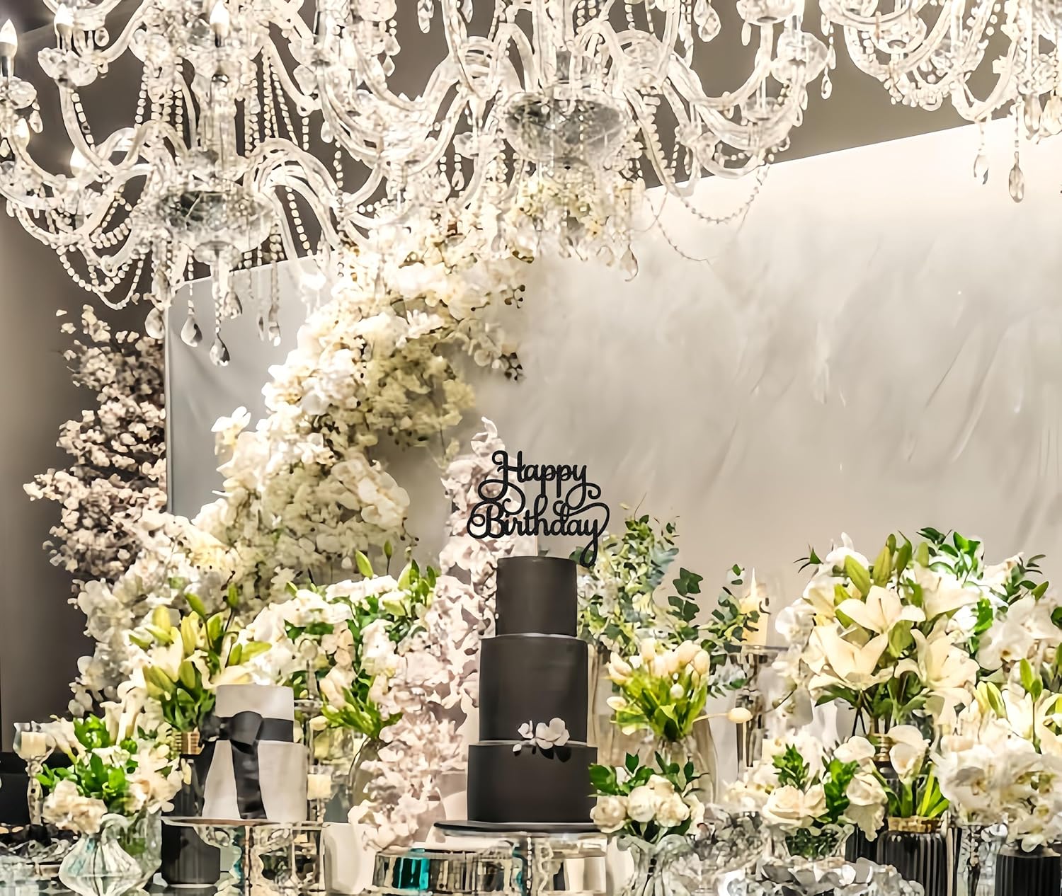 - HIGH QUALITY CARDSTOCK - Each happy birthday cake topper is made of Black 350GMS thick cardboard, which is sturdy and durable, effectively preventing damage during transportation. This happy birthday cake topper is a true flash that shines from every angle, providing a unique touch and illuminating the entire gathering venuedecor