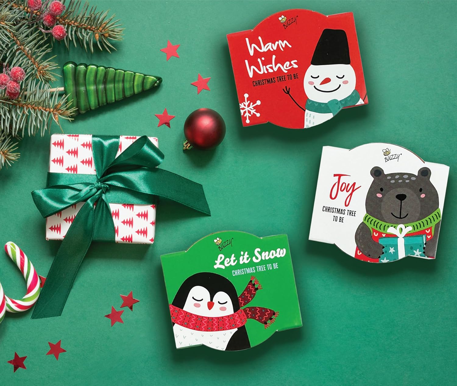 BUZZY Seeds Kids Holiday Mini Spruce Kit, 12-Pack Terracotta Pots with Bear, Penguin and Snowman Designs, All-in-One Tree Seed Starter Set, Stocking Stuffer, Children's, Party Favor