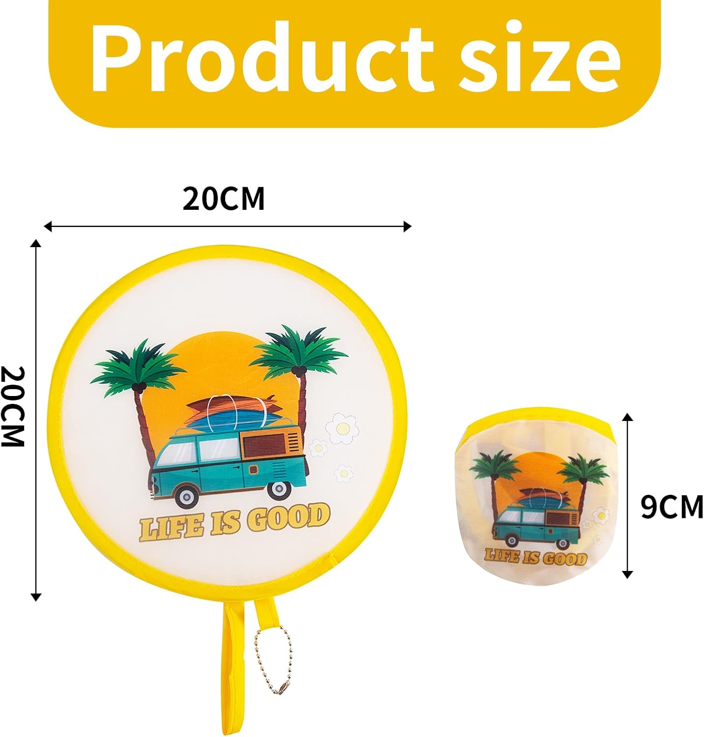 - 【Portable Round Hand Fans Size】The Hand Fan Folding Fan Opening with 7.8'' * 7.8''and only 2.8'' * 2.8'' after folding, lightweight and portable.easy to carry. Can help to cool you down any place and any timefit perfectly even into a handbag,Suitable for small hands, space-saving and labor-saving.