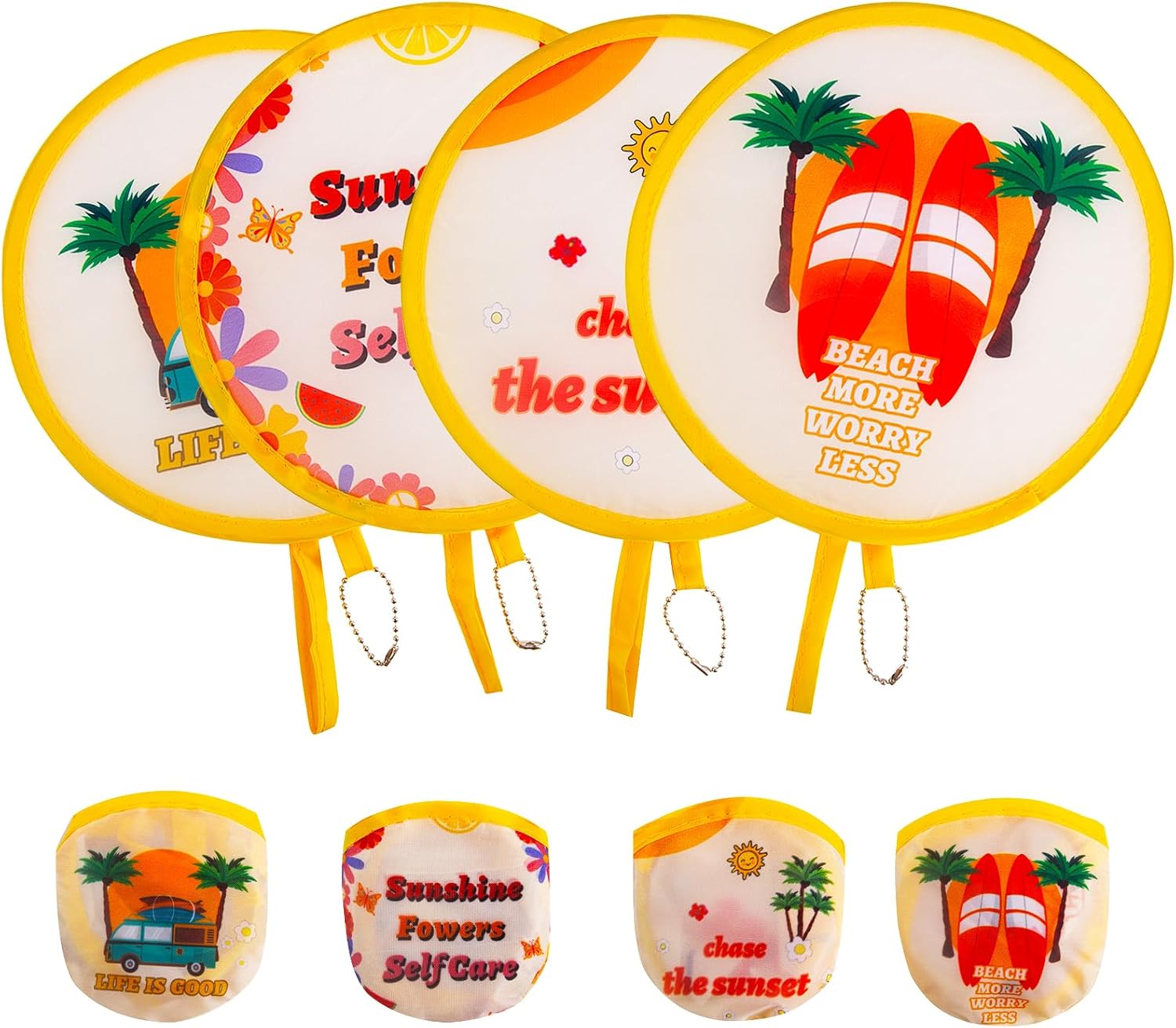 4 Styles Summer Beach Round Foldable Hand Fan Japanese Foldable Fan Style Handheld Compact Cooling Fans,Round Folding Fan for Outdoor Games,Xmas Decoration,Festival,Party Favors,Travel,Events