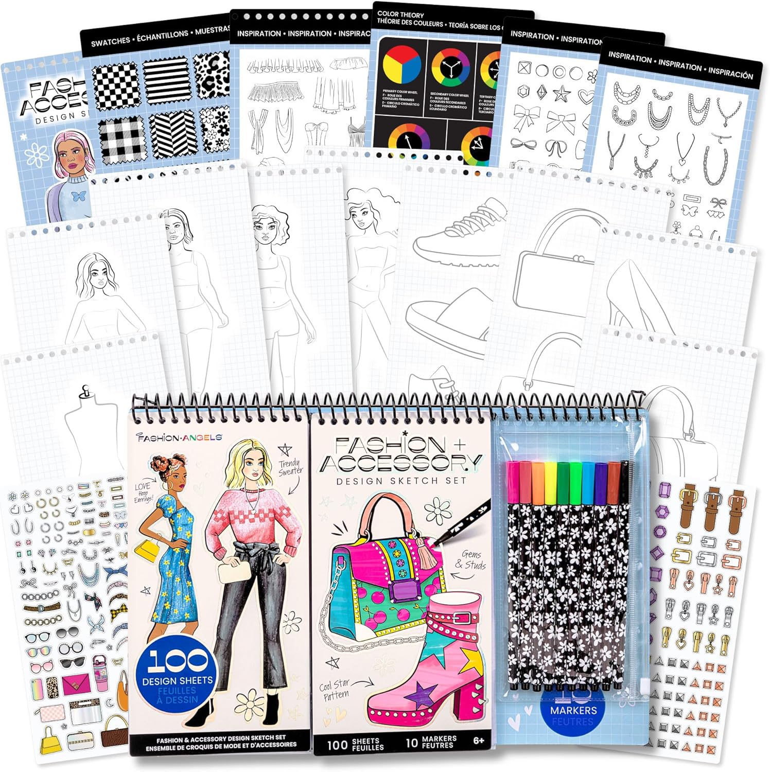 Fashion Angels Fashion & Accessory Design Sketch Set, Includes Sketch Pad with Stickers & Markers, Ultimate Fashion Design Sketch Book for Girls