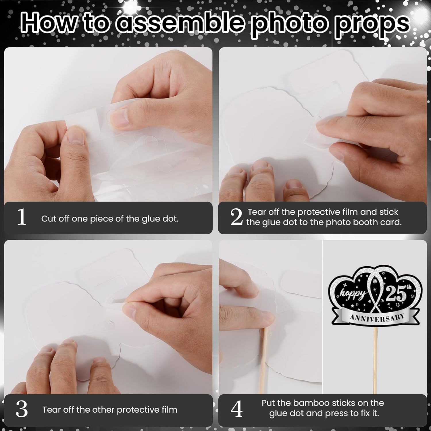 - Easy to Assemble: The 25th Anniversary photo booth props come with wooden sticks and glue, allowing you to stick them together in just a few minutes and enjoy DIY fun. Get a unique set of 25th anniversary party photo booth props, and then enjoy the 25th anniversary celebration with your partner, leaving wonderful memories