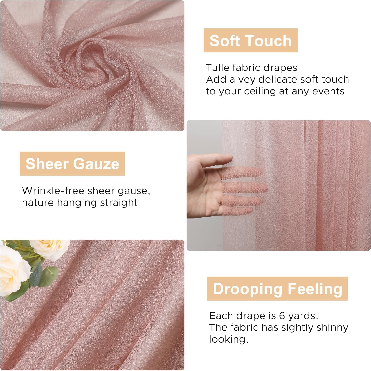 - Soft Wedding Drapes: Sheer drapes backdrop for wedding arch decor are made of polyester fabric, touch silky soft. These arch draping fabric is lightweight, easy to hang vertically with natural sagging, wrinkle-free, durable and reusable