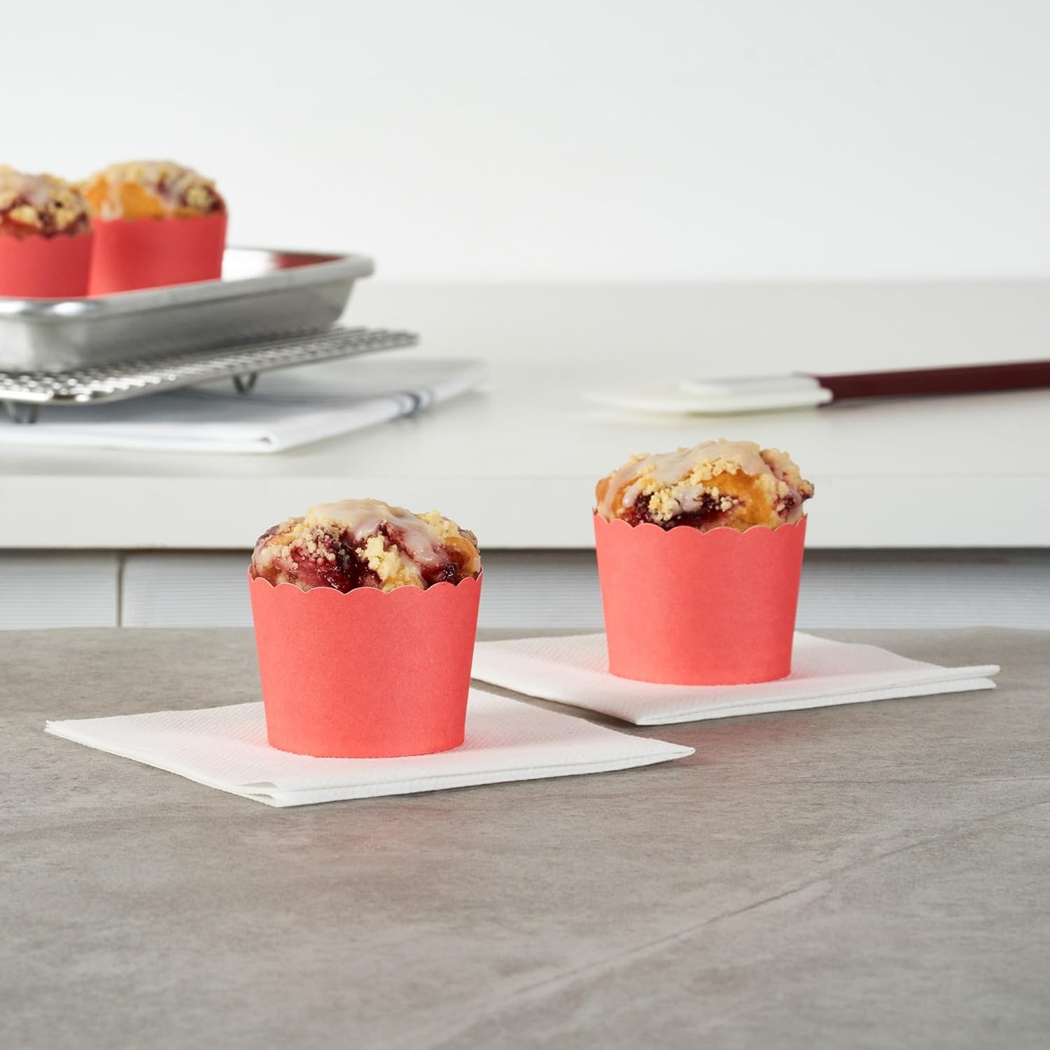 Panificio 3 Ounce Cupcake Wrappers, 200 Scalloped Baking Cups - Oven-Ready, Greaseproof, Red Paper Cupcake Liners, Disposable, For Birthdays, Baby Showers, Or Weddings - Restaurantware