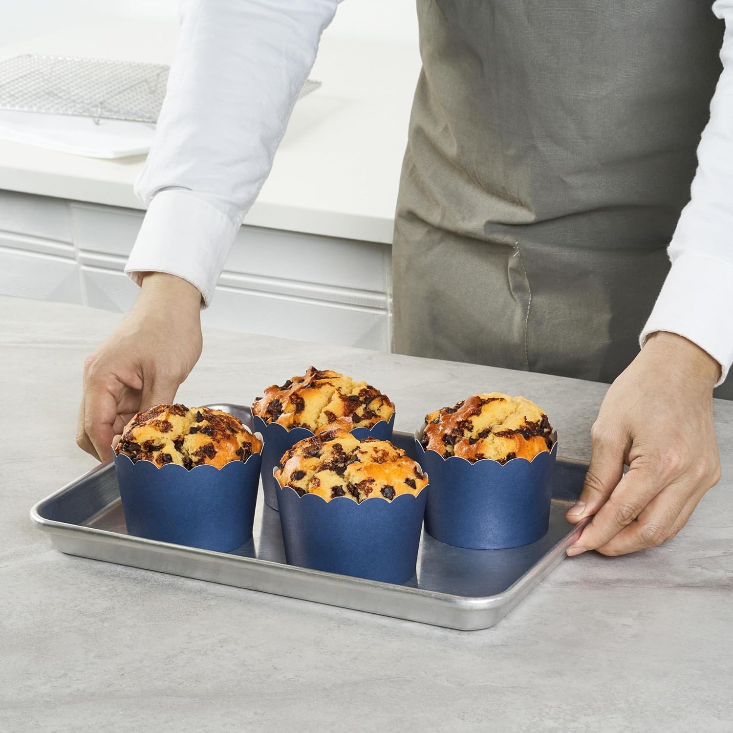 - SUSTAINABLE OPTION: Great for ecologically-conscious bakers! These disposable baking cups are made from sustainable paper and the midnight blue finish blends in with any type of cupcake decoration.