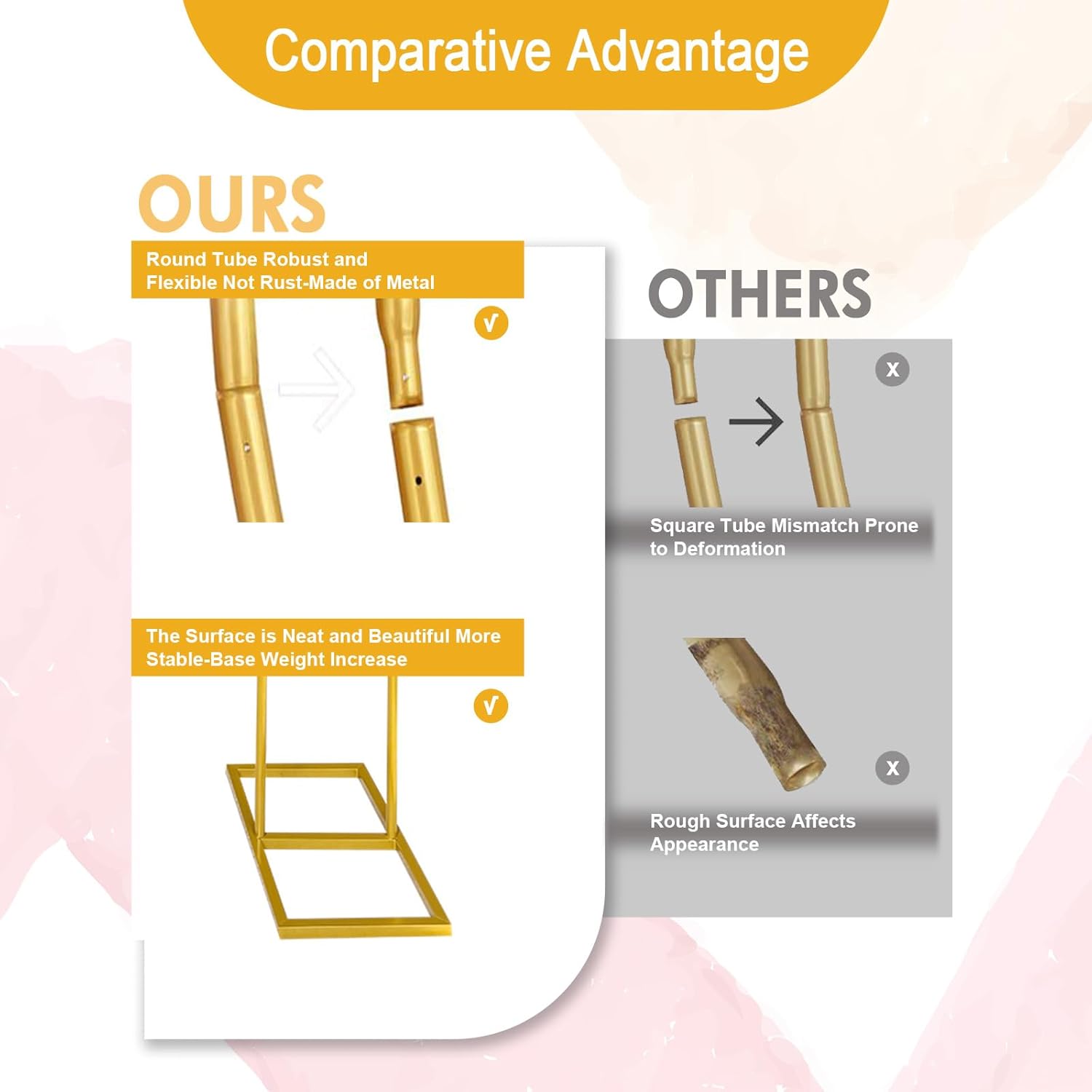 - ★【Strong and Stablearch】Our backdrop stand is constructed of strong Metal pipes that are more stable and not easily twisted,Higher load-bearing capacity.The golden gleam exudes elegance.Combined with the classic door structure, it increases overall strength and stability.