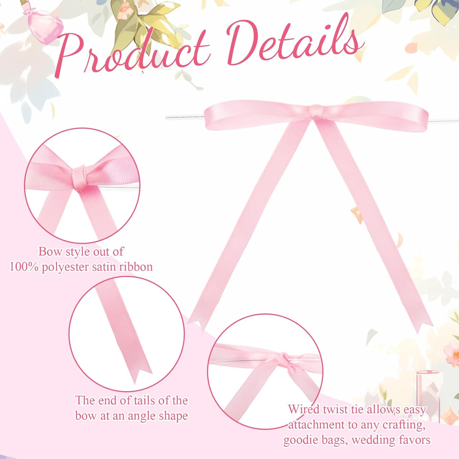 - Pink Twist Tie Bows: our package includes 100 pink ribbon bows and 100 twist ties; This set will easily meet your various needs for decoration or DIY projects; The dimensions of our bow are approximately 5 x 7 inches/ 12.7 x 17.78 cm; The decent size is suitable for decorating gifts, packages, and other items; You can have fun with family and friends making eye catching decorative pieces by DIY