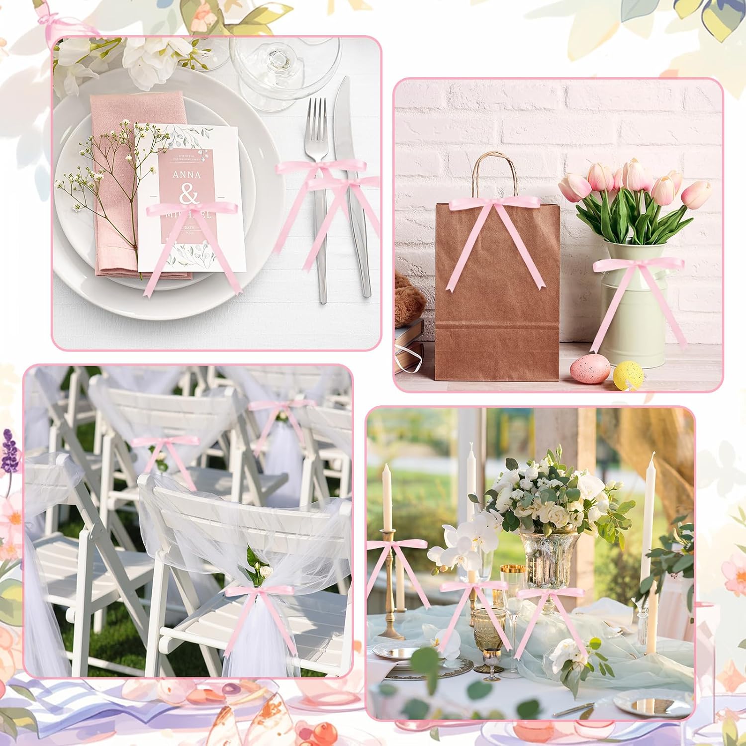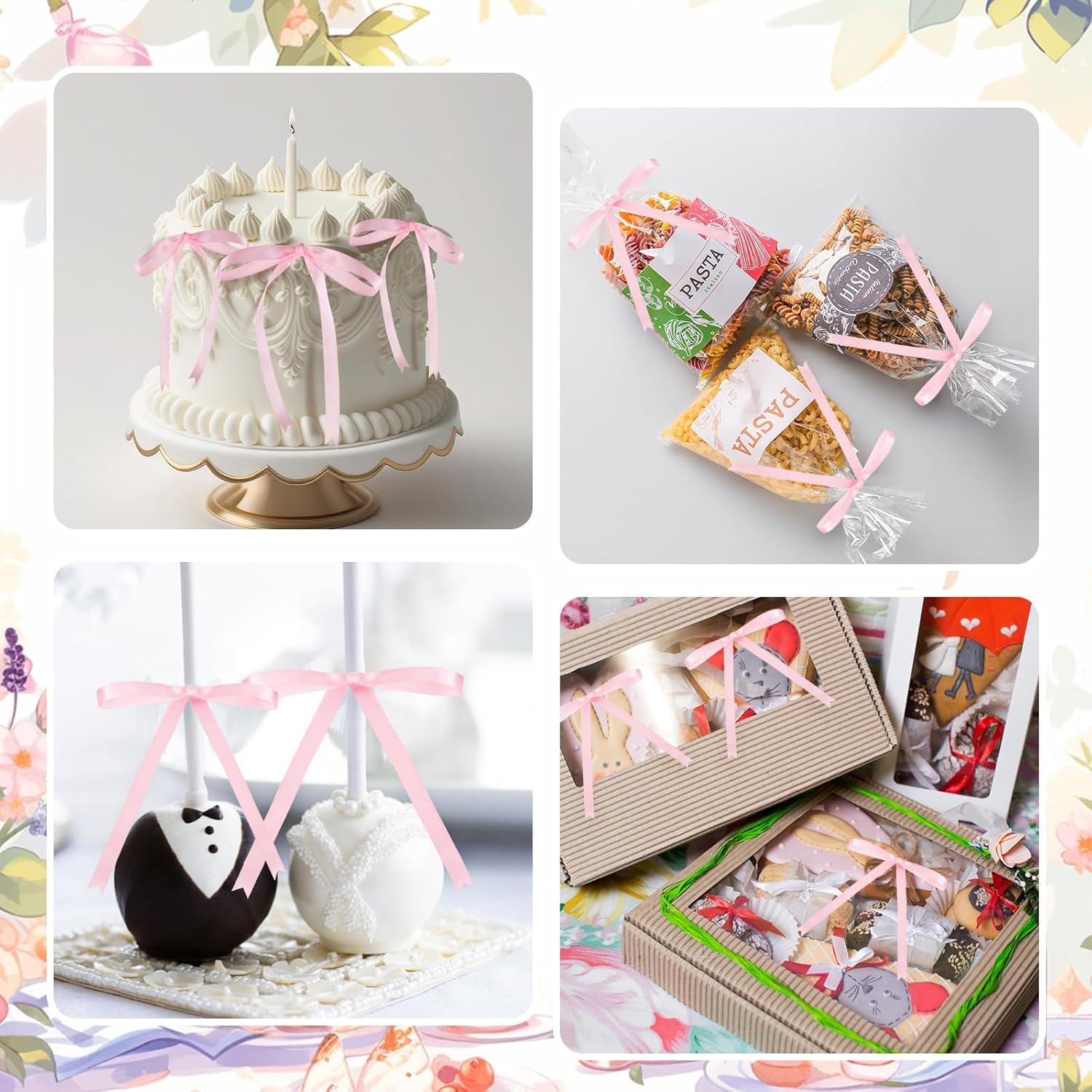 - Multipurpose Decoration: our pre tied bows can be utilized in many ways; From fixing various plastic bags like snack bags, gift bags, candy bags, cookie bag, bread bag and more, to decorating Christmas trees, gift boxes, gift baskets, bottles, invitation cards, hairpins, scrapbooks and other DIY projects; You can use your imagination to make fun and beautiful objects with family and friends