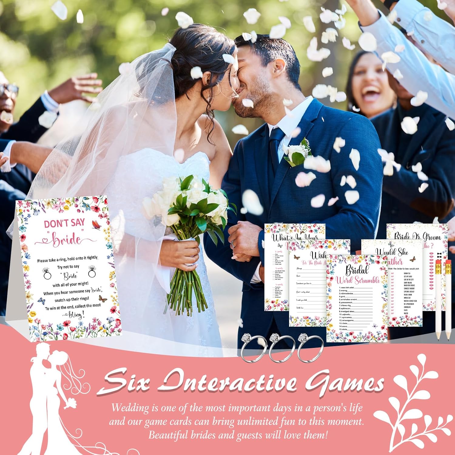 Estune 331 Pcs Bridal Shower Games Supplies, 5 Sets 250 Pcs Wedding Cards 1 Put a Ring on It Bridal Shower Games with 60 Rings and 20 Pencils(Wildflower Style)