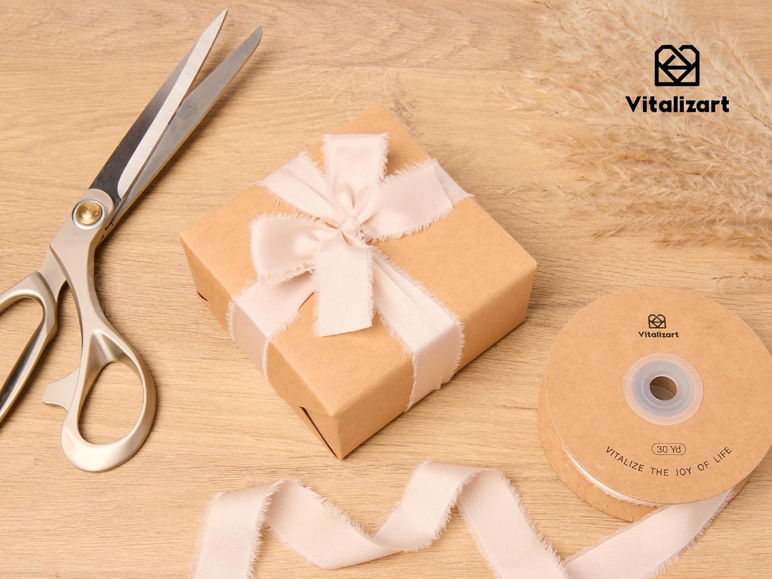 Vitalizart Silk Like Satin Ribbon 1 inch x 30 Yard Light Nude Handmade Frayed Ribbons for Gift Wrapping Baby Shower Wedding Bridal Bouquets Holiday Decor