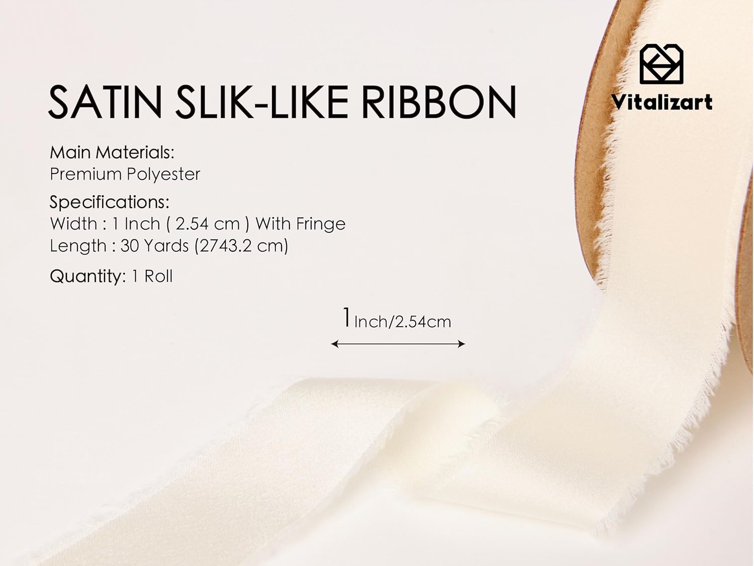 Vitalizart Silk Like Satin Ribbon 1 inch x 30 Yard Ivory White Handmade Frayed Ribbons for Gift Wrapping Baby Shower Wedding Bridal Bouquets Holiday Decor
