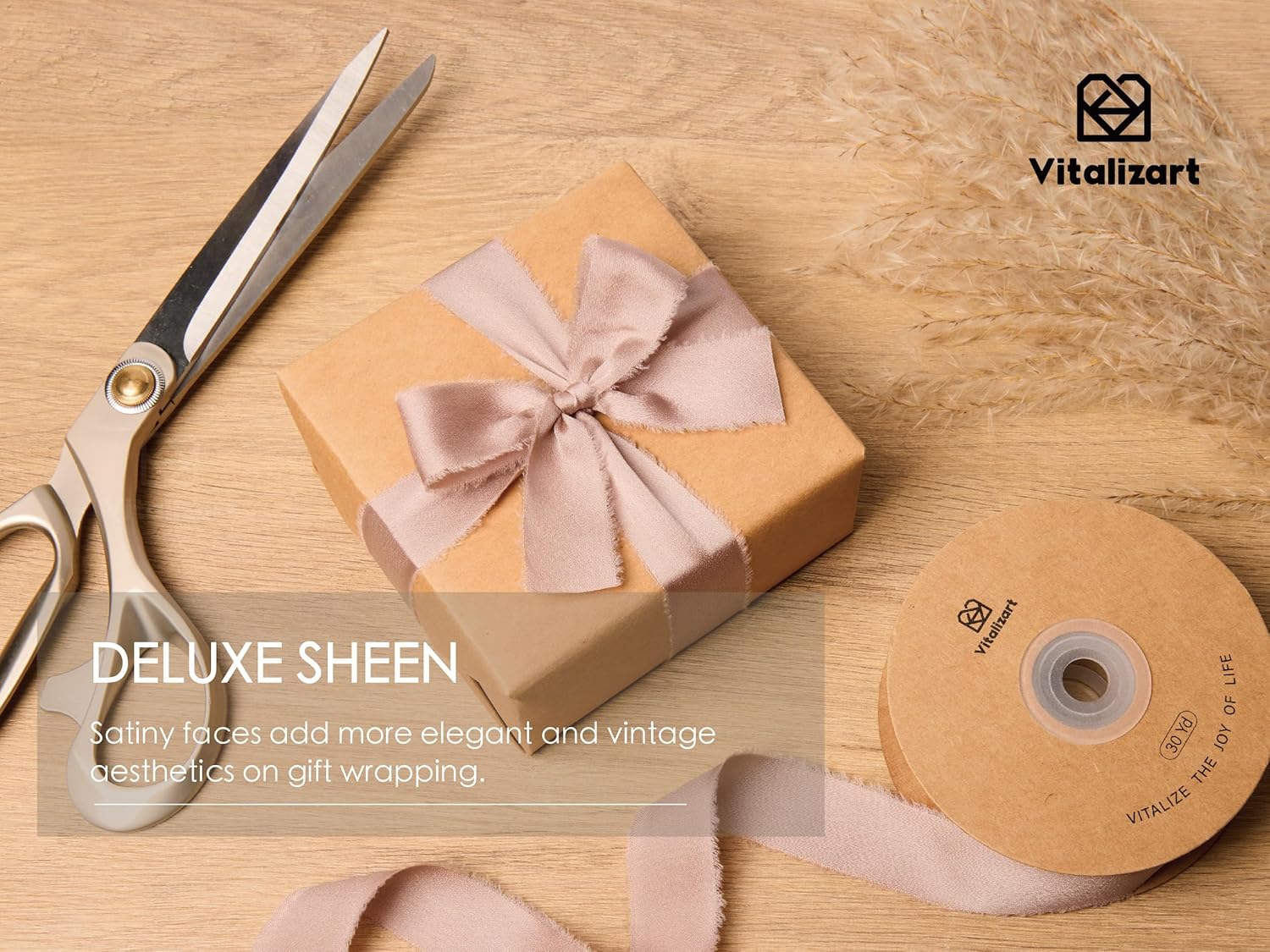 Vitalizart Silk Satin Ribbon 1 inch x 30 Yard Nude Handmade Frayed Ribbons for Gift Wrapping Baby Shower Wedding Bridal Bouquets Holiday Decor