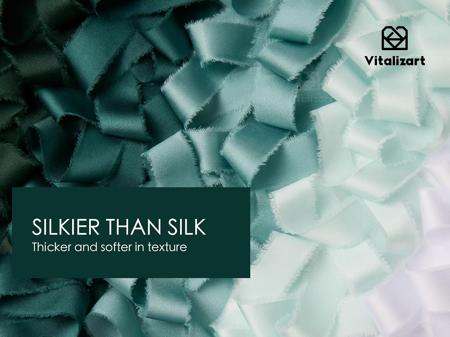 Vitalizart Silk Like Satin Ribbon 1 inch x 25 Yard Green & Sage Handmade Frayed Ribbons for Gift Wrapping Baby Shower Wedding Bridal Bouquets Holiday Decor
