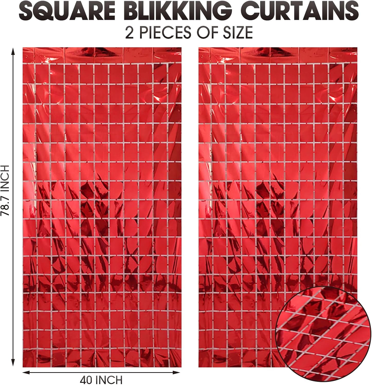 - 【Red Fringe Backdrop】- You will get 2 pack of red square shape laser foil fringe tinsel curtain. Each metallic tinsel square curtain is 3.3 feet(wide)×6.6 feet(drop), enough length for decorate your party. You can use to decorate party easily, door streamer. Glittery and sparkly backdrop streamers will surely bring a bright and delightful ambiance to your party. These fringe wall backdrop will surely accompany you through several important holidays.