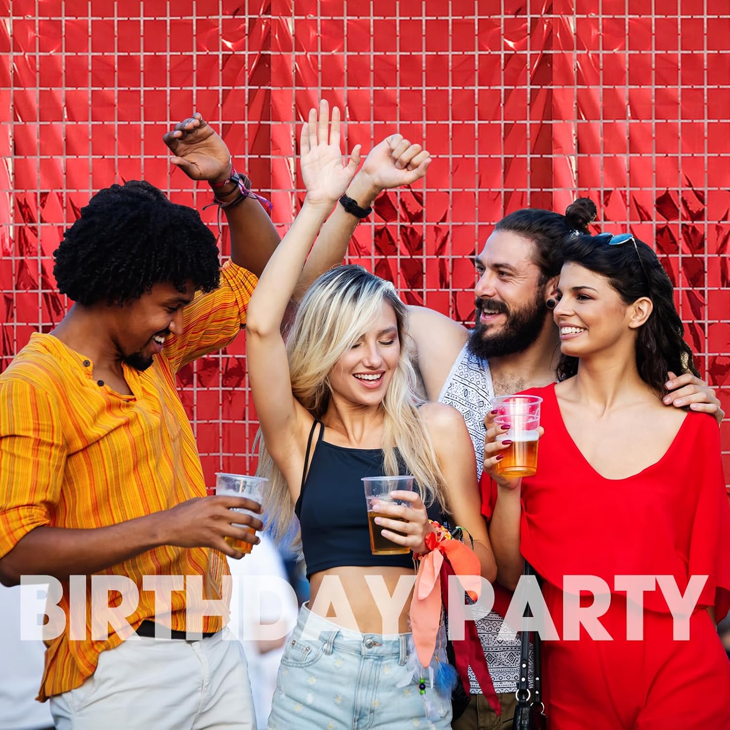 - 【Quality Material】- The red tinsel curtain backdrop is made of high-quality PET material with shiny surface, a whole piece of complete aluminum film is cut into the appearance of square curtain by the machine. The high-quality fringe curtains, featuring high toughness and unbreakability, can be used for a long time. They are not easy to fade or deform, making them convenient for long-term use and storage. Stains produced during use can be easily removed by wiping with water or alcohol.