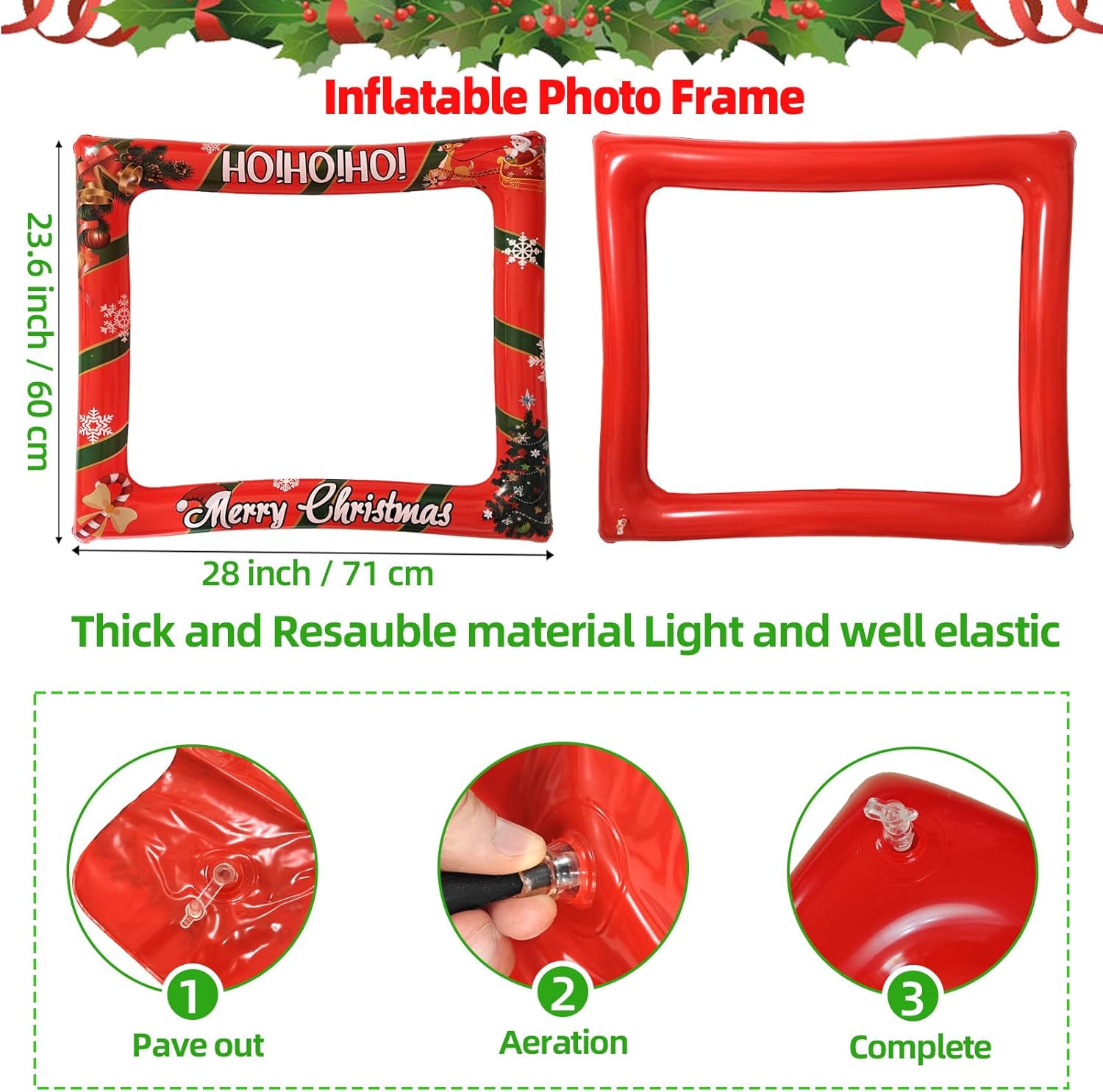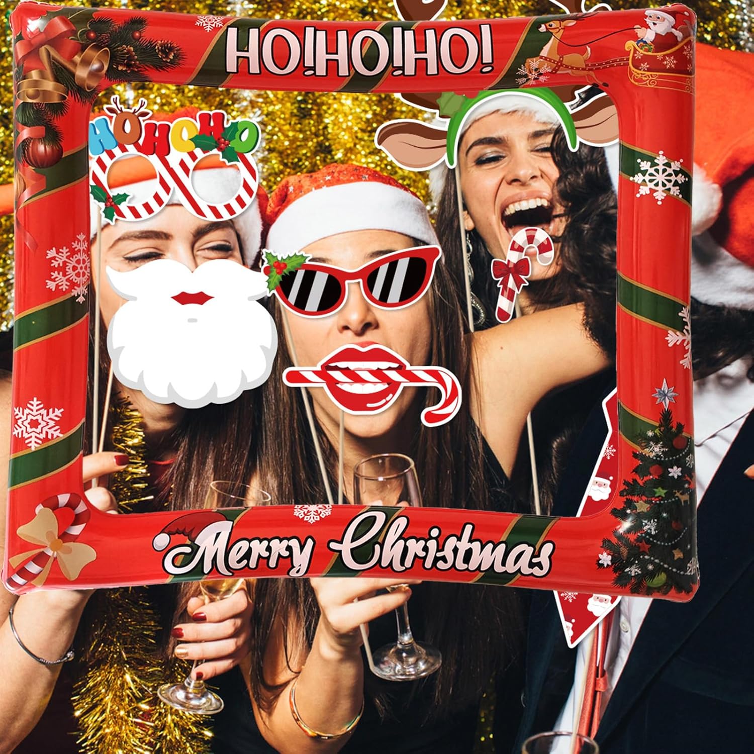 - Christmas Party Props: This set includes a Merry Christmas inflatable selfie frame and assorted with 31 pcs Christmas-themed photo booth props, enjoy a variety of amusing accessories like Santa hats, reindeer antlers, elf ears, mustaches, glasses, and other funny patterns related to Christmas. Nice to be your additional for Holiday Atmosphere Dรฉcor.