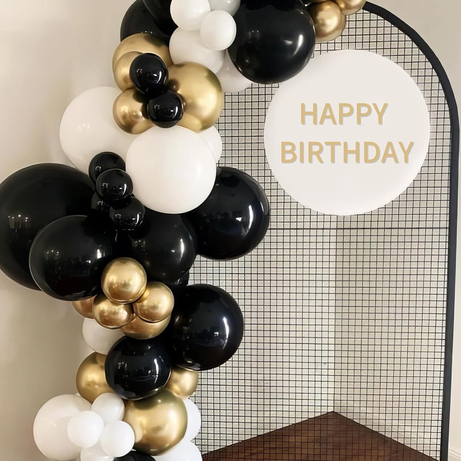 - 12 inchs Gold and Black Balloons Set: 12pcs matte black balloons, 10pcs metallic gold balloons, 8pcs gold confetti balloons, 8pcs black and gold confetti balloons, 12pcs pearl white balloons, 1pcs gold ribbon in our party balloons set. From birthday to wedding, make your events unforgettable with our top-notch, reliable balloons that add a touch of elegance and fun.