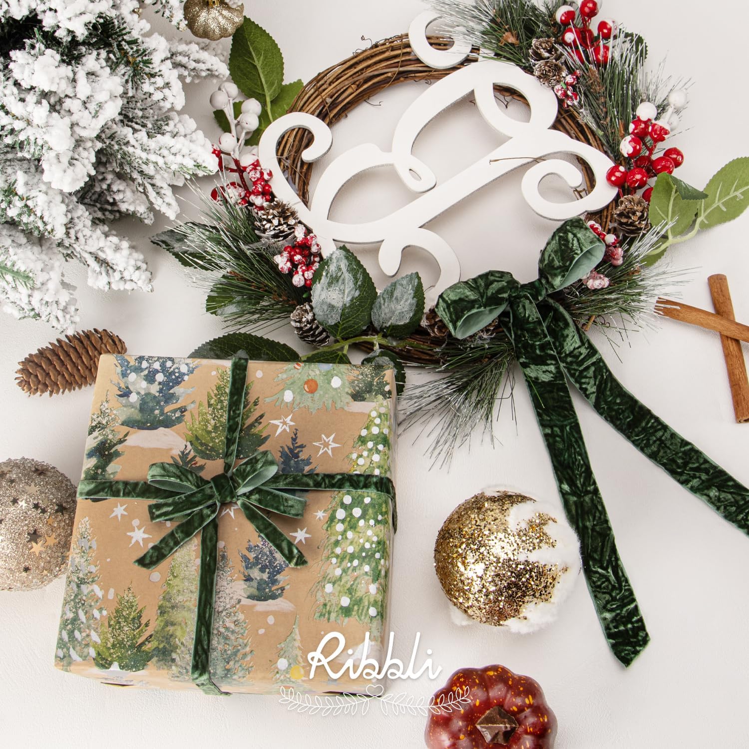 Ribbli Forest Green Velvet Ribbon 3/8 Inches Luxury Crinkled Green Christmas Ribbon for Gift Wrapping Crafts Home Decor-Continuous 10 Yard
