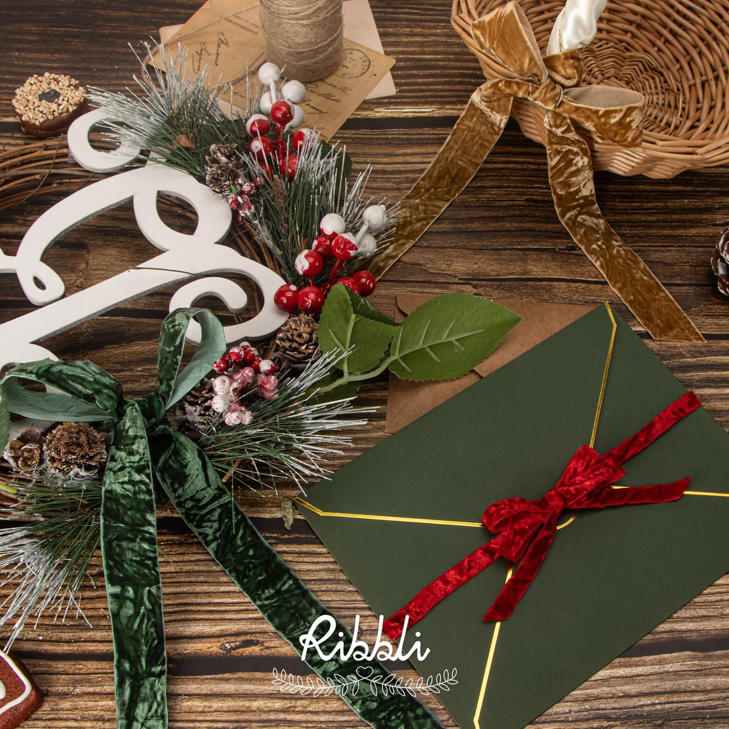 Ribbli Red Velvet Ribbon 3/8 Inches Luxury Crinkled Red Christmas Ribbon for Gift Wrapping Crafts Home Decor-Continuous 10 Yard