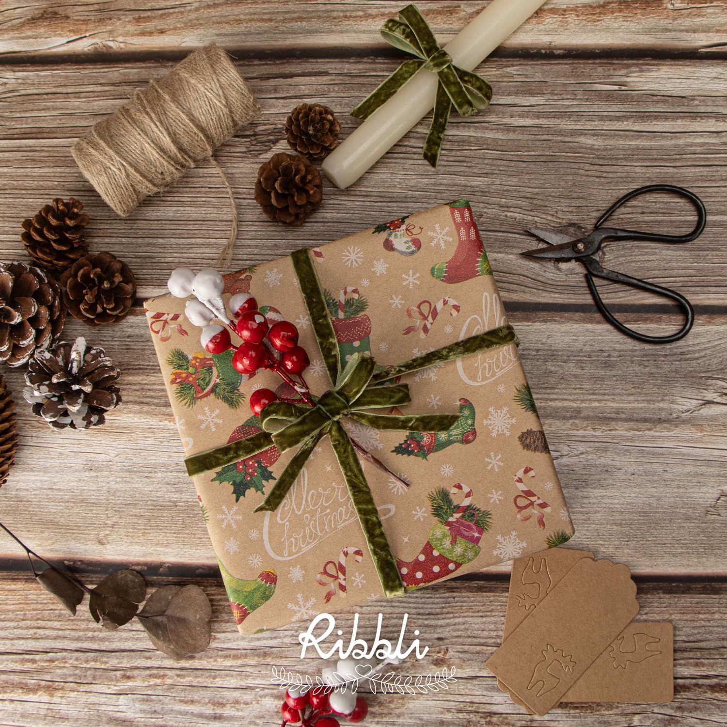 Ribbli Moss Green Velvet Ribbon 3/8 Inches Luxury Crinkled Green Christmas Ribbon for Gift Wrapping Crafts Home Decor-Continuous 10 Yard