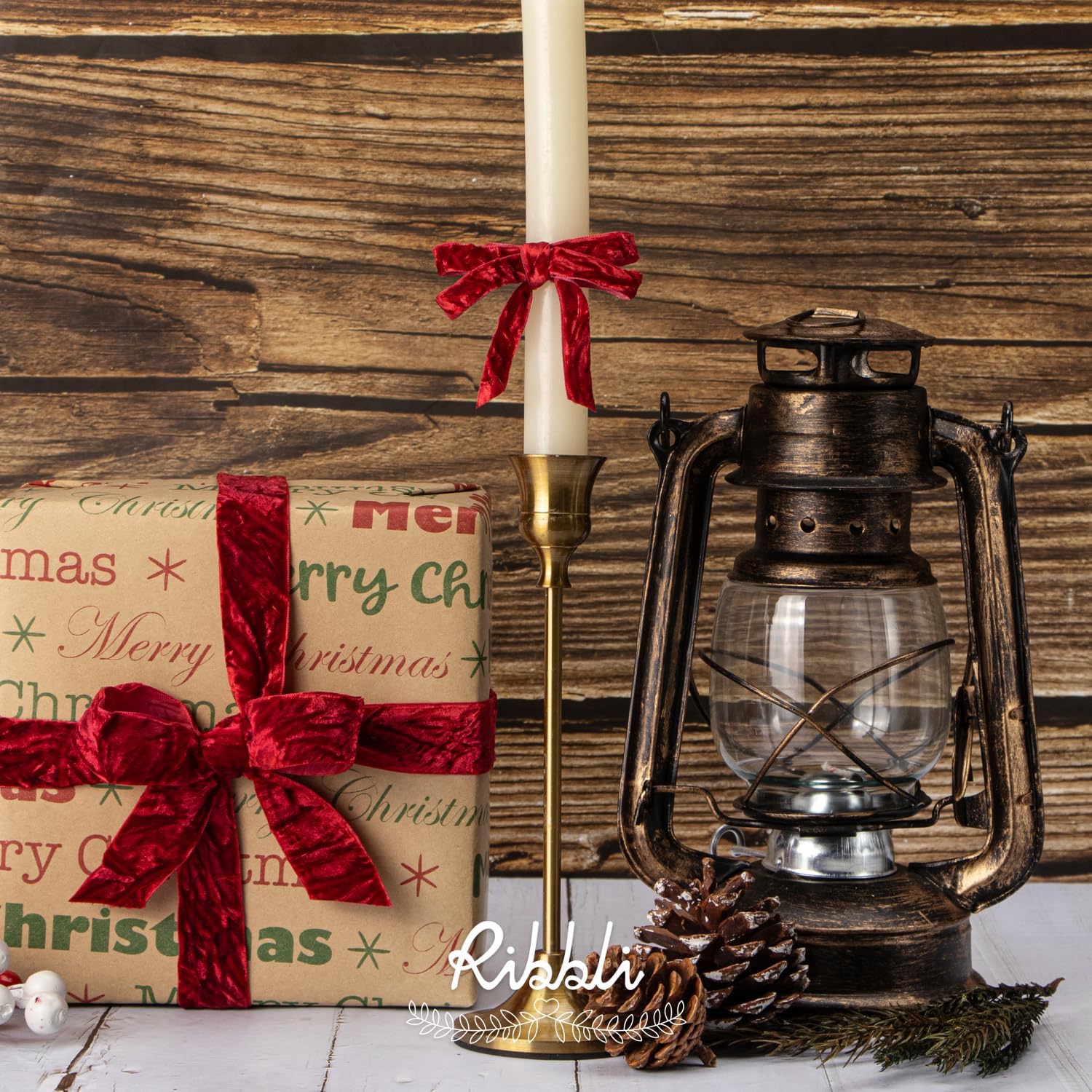 Ribbli Dark Red Velvet Ribbon 1 Inches Luxury Crinkled Red Christmas Ribbon for Gift Wrapping Crafts Home Decor-Continuous 10 Yard