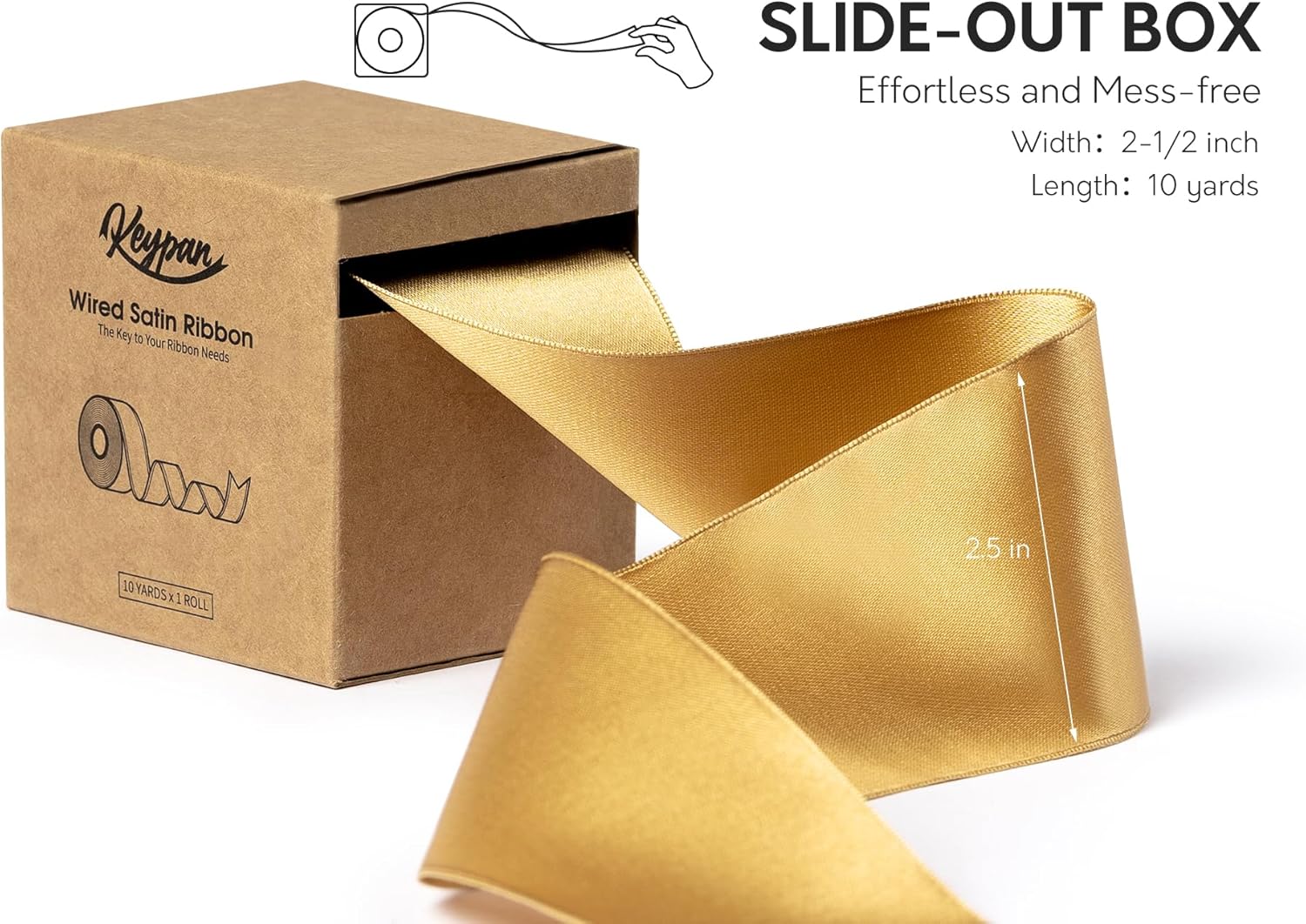 - SLIDE-OUT PACKAGING BOX: This satin ribbon comes in a clever pull-out paper box packaging, saving you time and making the usage process more seamless. The refined packaging box also makes an elegant gift for your friends and loved ones