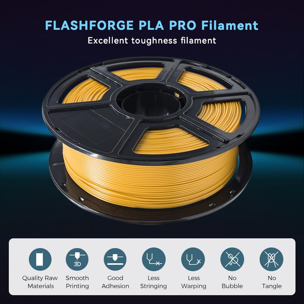 FLASHFORGE 3D Printer Filament, PLA PRO Filament 1.75mm, 1KG Spool (2.2lbs), Dimensional Accuracy +/- 0.02mm for FDM 3D Printers, Better Tenacity & No Knotting (Gold)