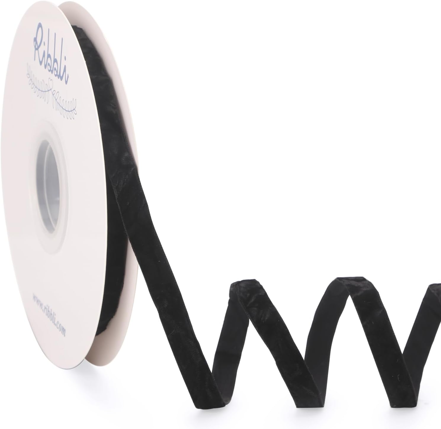 Ribbli Black Velvet Ribbon 3/8 Inches Luxury Crinkled Black Christmas Ribbon for Gift Wrapping Crafts Home Decor-Continuous 10 Yard