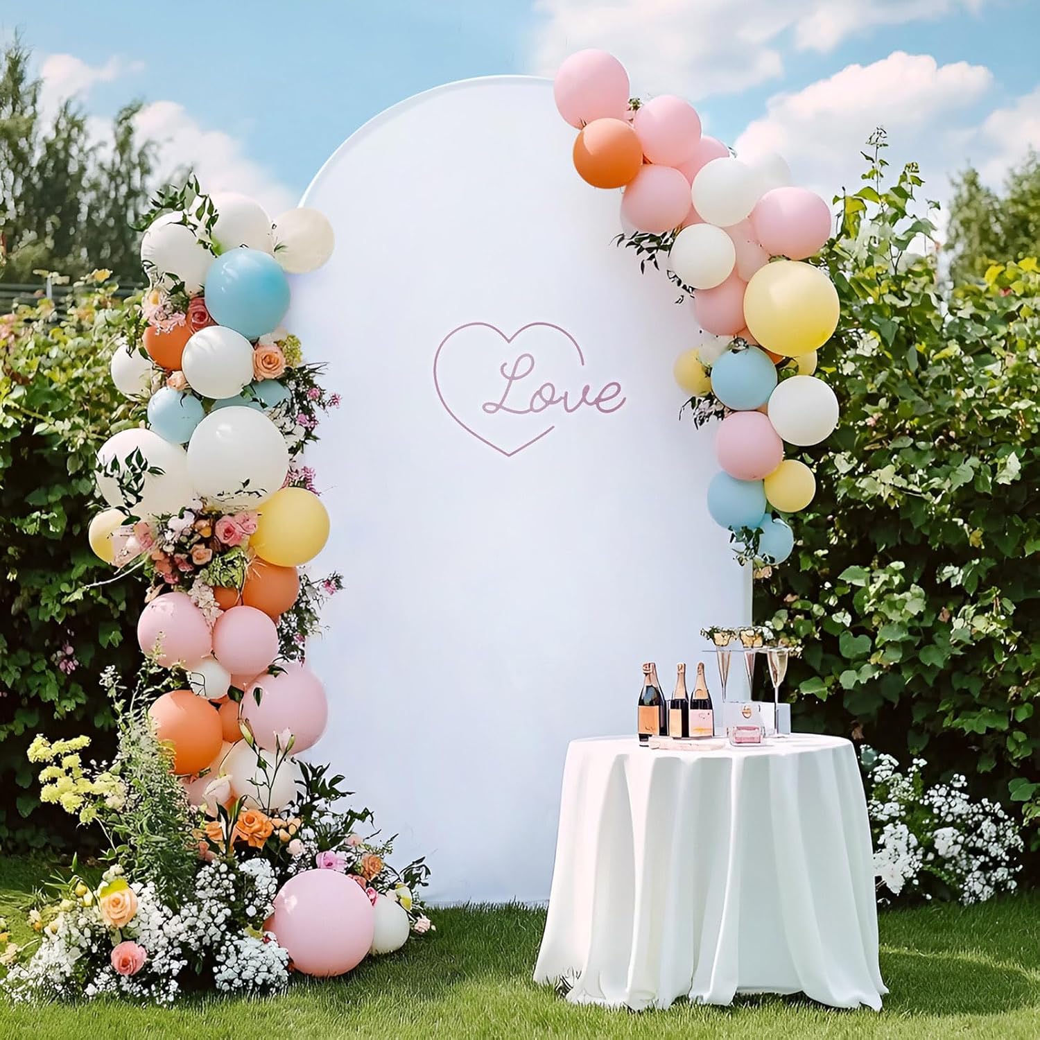 - Package: metal arch, white background cover, assembly accessories, assembly instructions. (Note: No balloons and artificial flowers decorations)