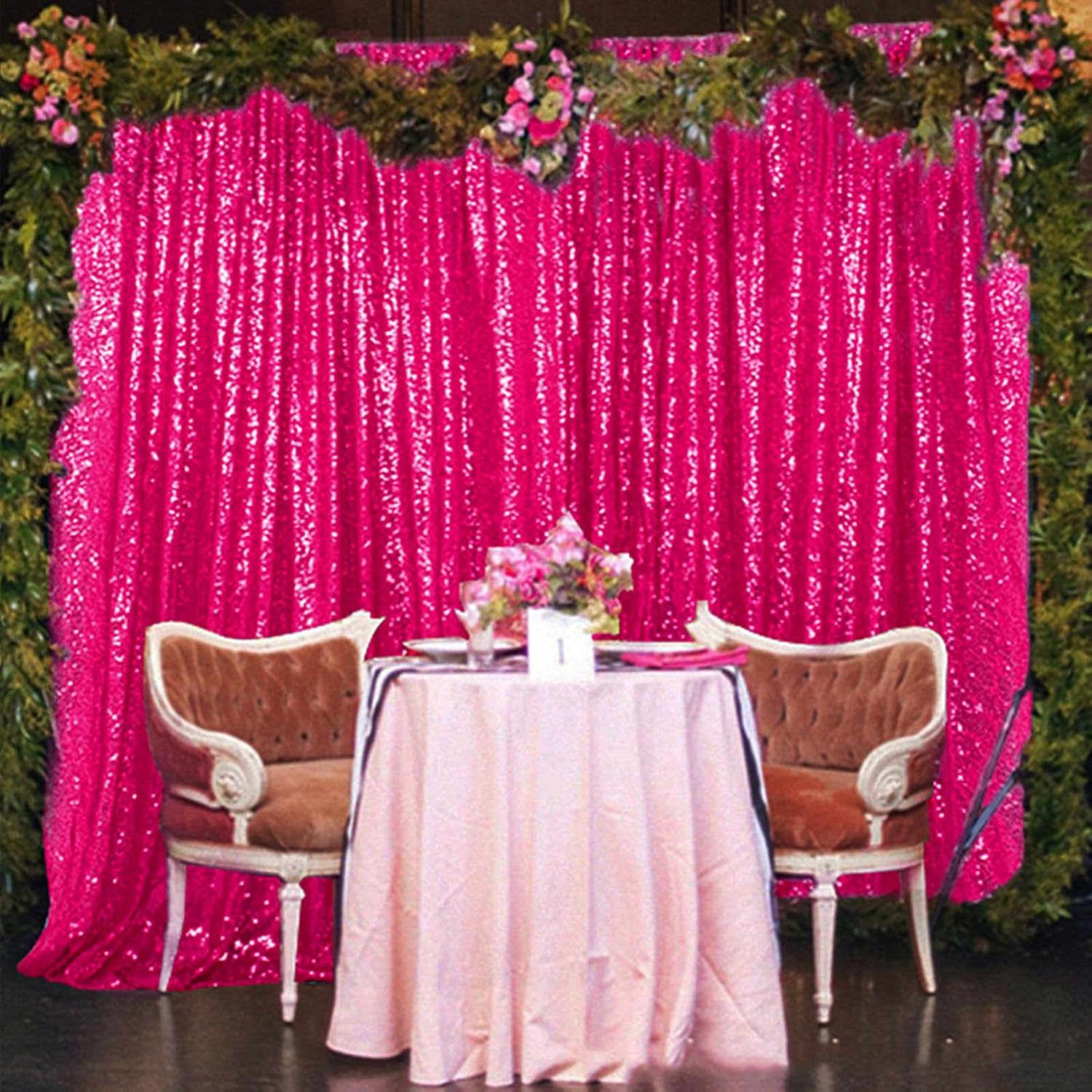 - ★ WHAT YOU GET★ : 1PC 4FTx8FT Hot Pink sequin backdrop curtain wedding background thanksgiving decor.