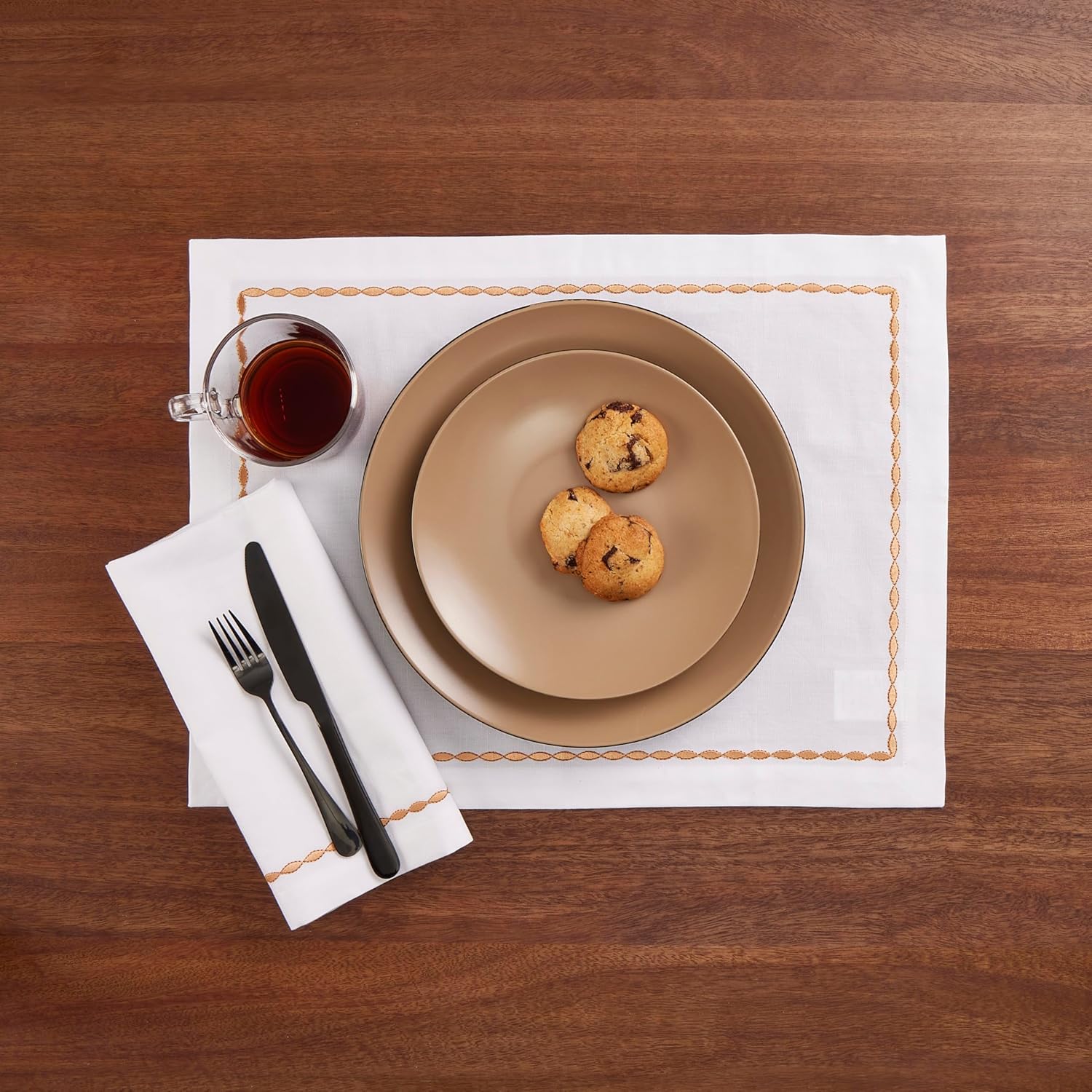 - Timeless Elegance: The "Threads of Grace" collection features intricate small motif embroidery on a crisp white cotton-linen base, offering a perfect blend of sophistication and simplicity for your table setting
