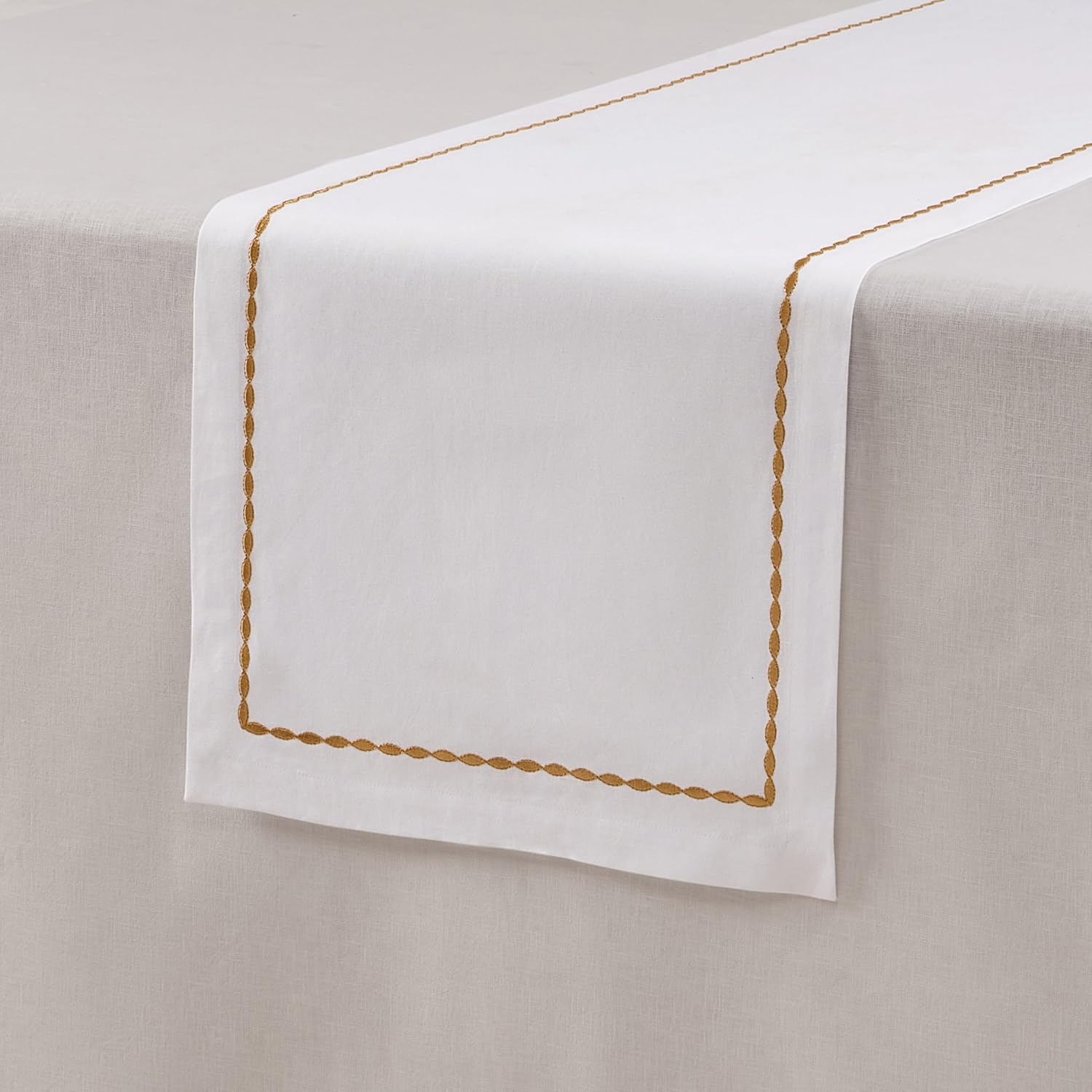 - Timeless Elegance: The "Threads of Grace" collection features intricate small motif embroidery on a crisp white cotton-linen base, offering a perfect blend of sophistication and simplicity for your table setting
