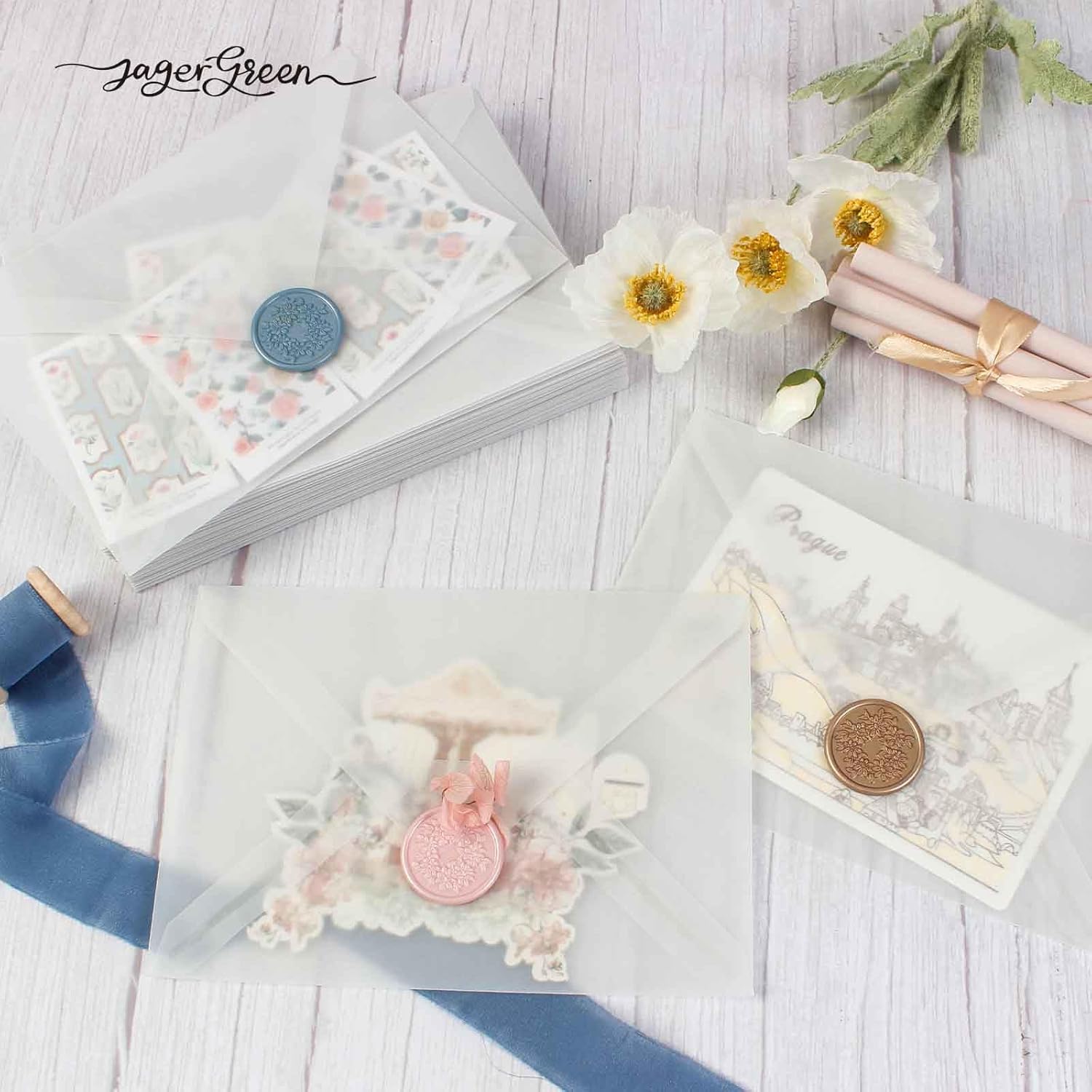 - Premium Material: JagerGreen 50 Pack A7 size (5.4" x 7.6"/13.7 cm x 19.4 cm) vellum envelopes are made of 100 GSM vellum paper, offering an elegant, frosted appearance. Large enough to comfortably fit 5" x 7" items, providing both durability and a sophisticated look, ideal for daily use.