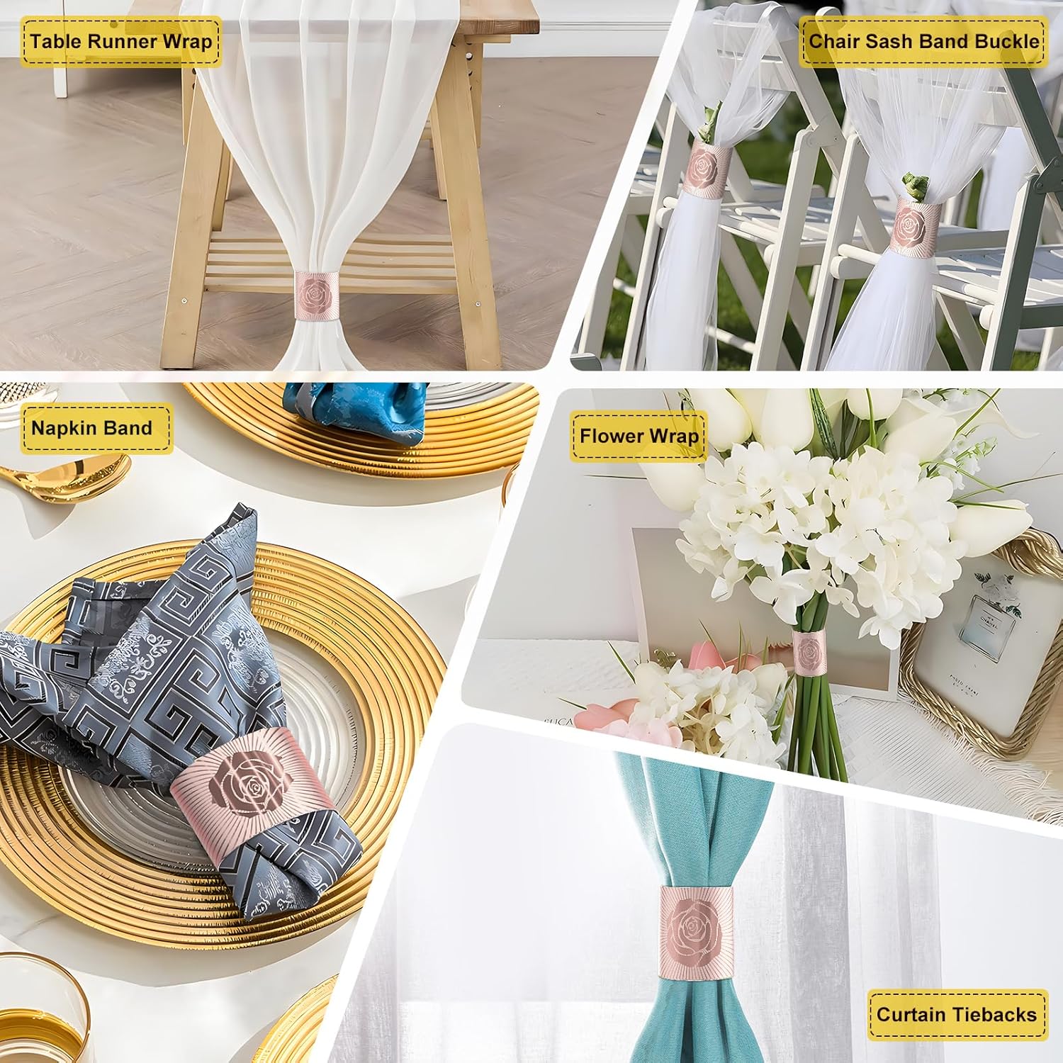 - Usage Scenarios: Use as napkin band, curtain tieback, flower wrap, chair sash band buckle, table runner wrap. Decorate and enhance table settings at home, restaurants, hotels, cruises, birthday party, wedding, Christmas, graduation, church event