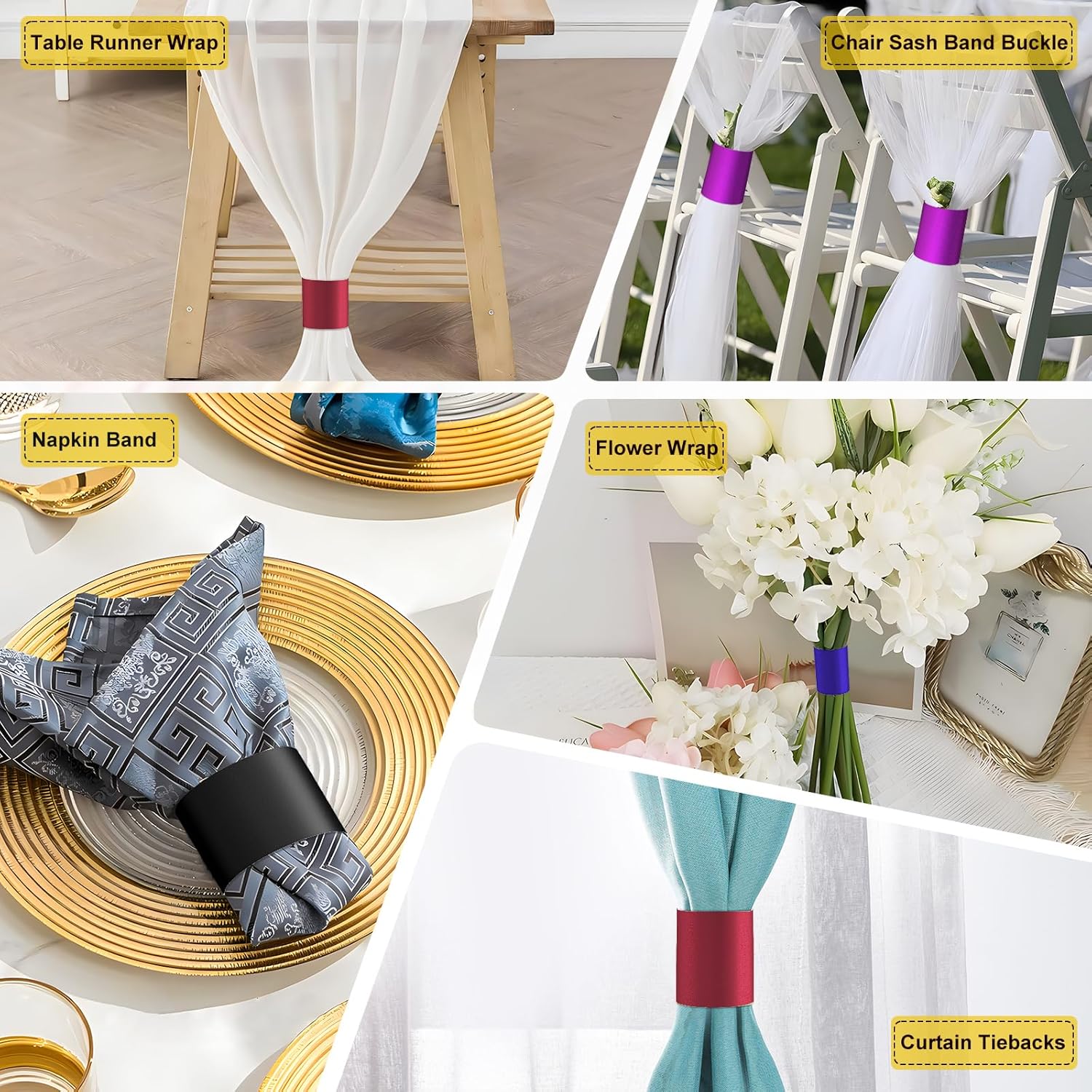 - Usage Scenarios: Use as napkin band, curtain tieback, flower wrap, chair sash band buckle, table runner wrap. Decorate and enhance table settings at home, restaurants, hotels, cruises, birthday party, wedding, Christmas, graduation, church event