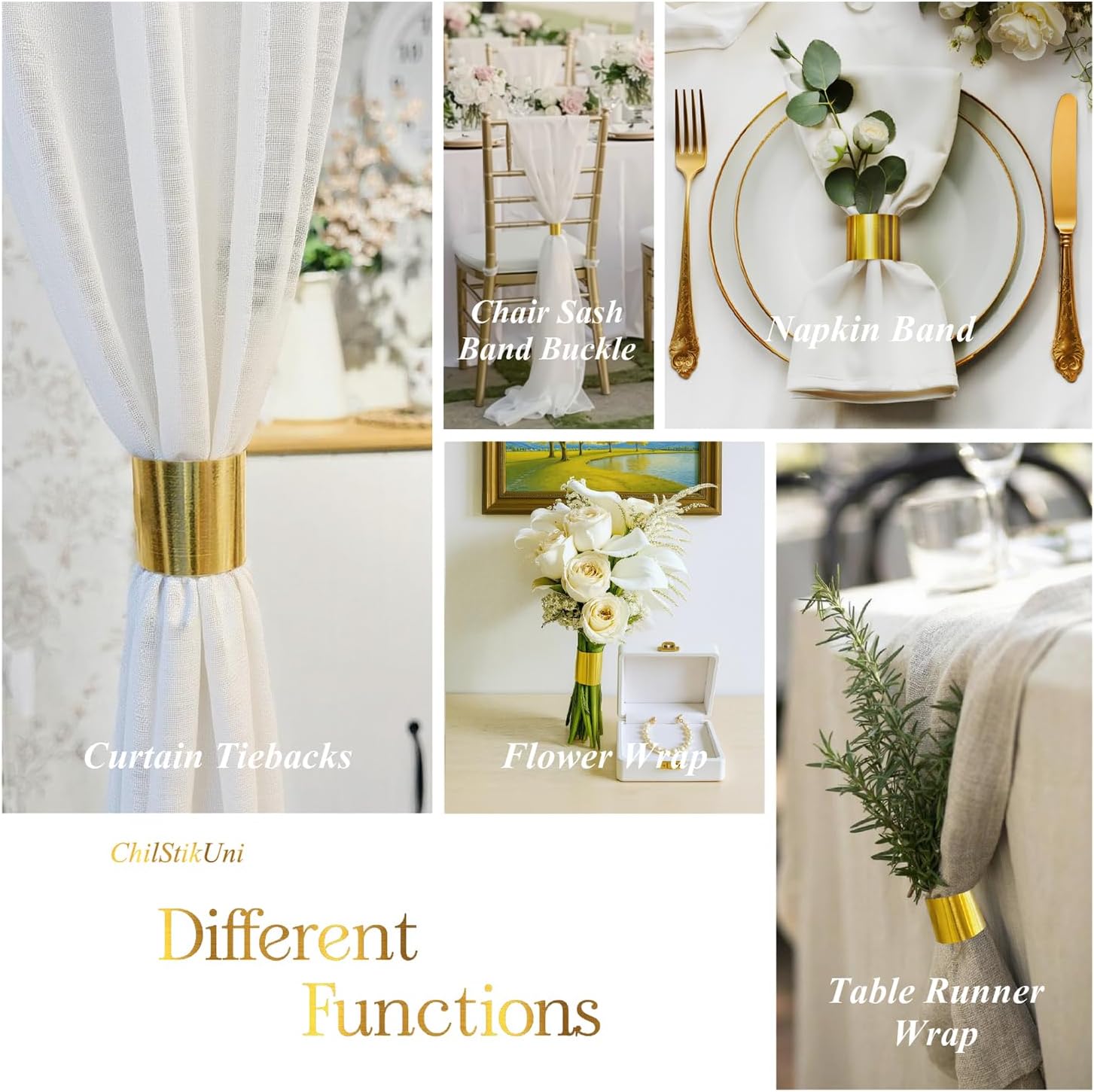 - Usage Scenarios: Use as napkin band, curtain tieback, flower wrap, chair sash band buckle, table runner wrap. Decorate and enhance table settings at home, restaurants, hotels, cruises, birthday party, wedding, Christmas, graduation, church event