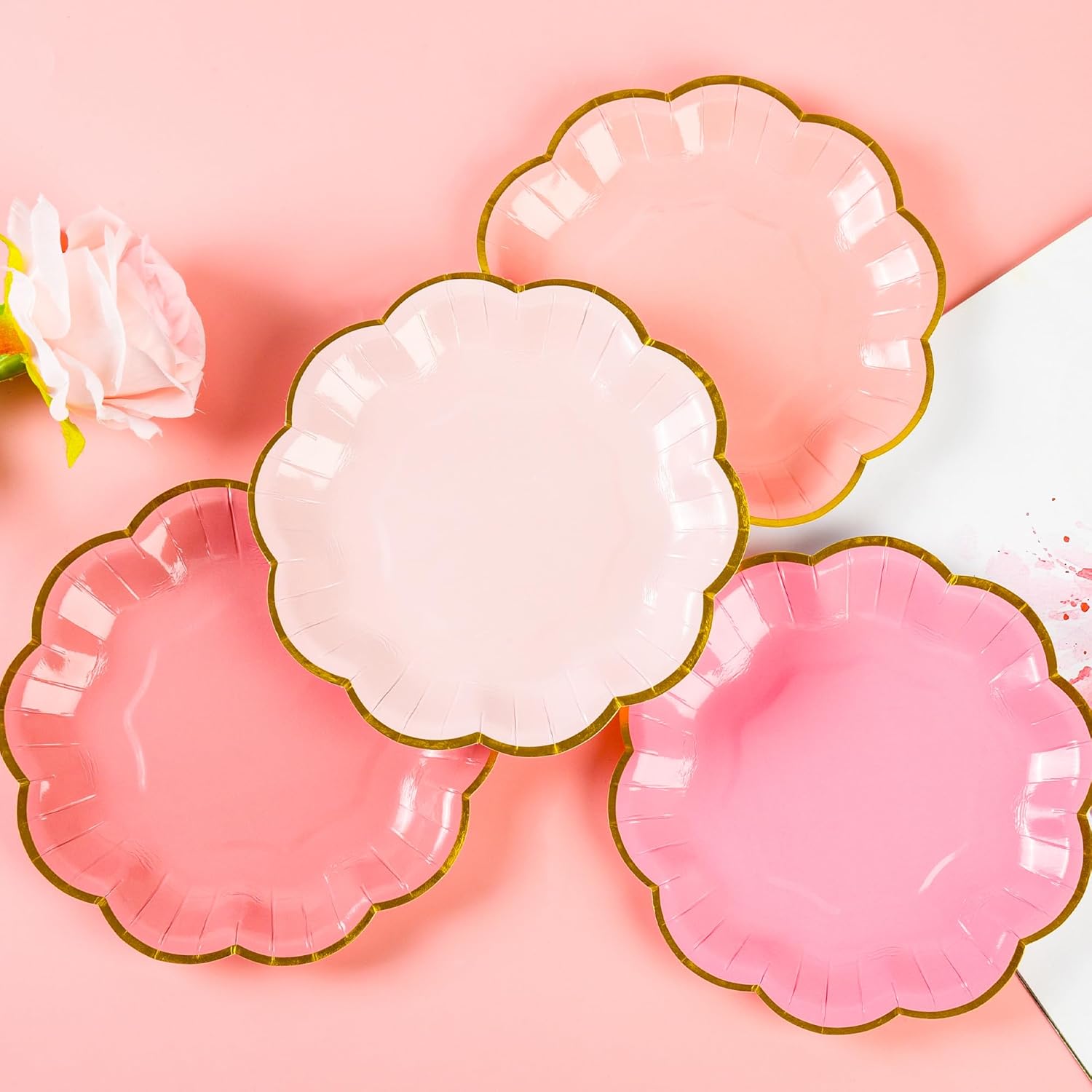 Pink Party Plates Gradient Pink Dessert Paper Plates 7inch Gold Foil Scalloped Edge Disposable Cake Plates for Tea Party Birthday Bridal Baby Shower Wedding Party Supplies (24)