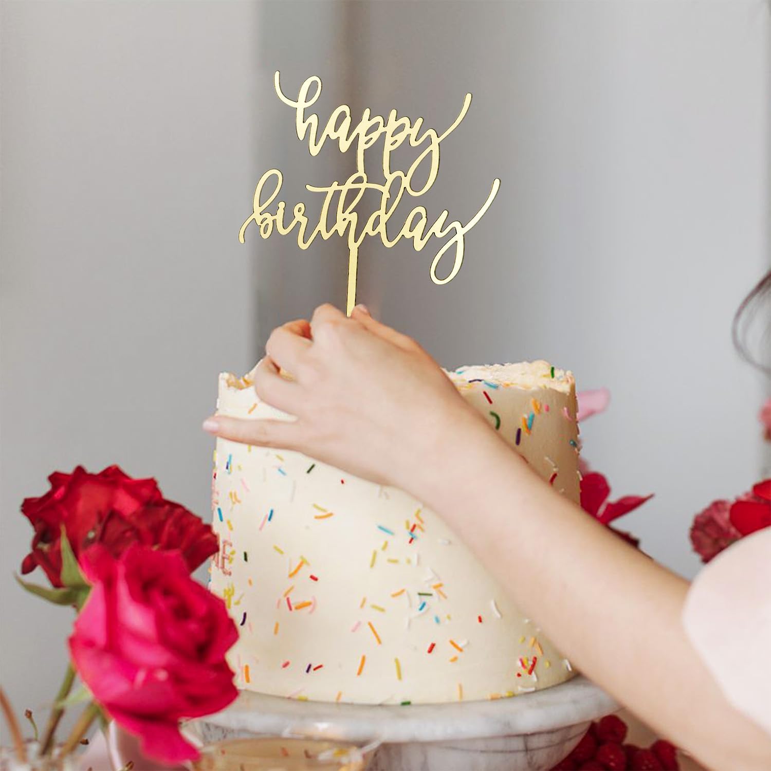 6-Pack Acrylic Birthday Cake Toppers, Minimalist Gold Happy Birthday Sign for Cake Decorations