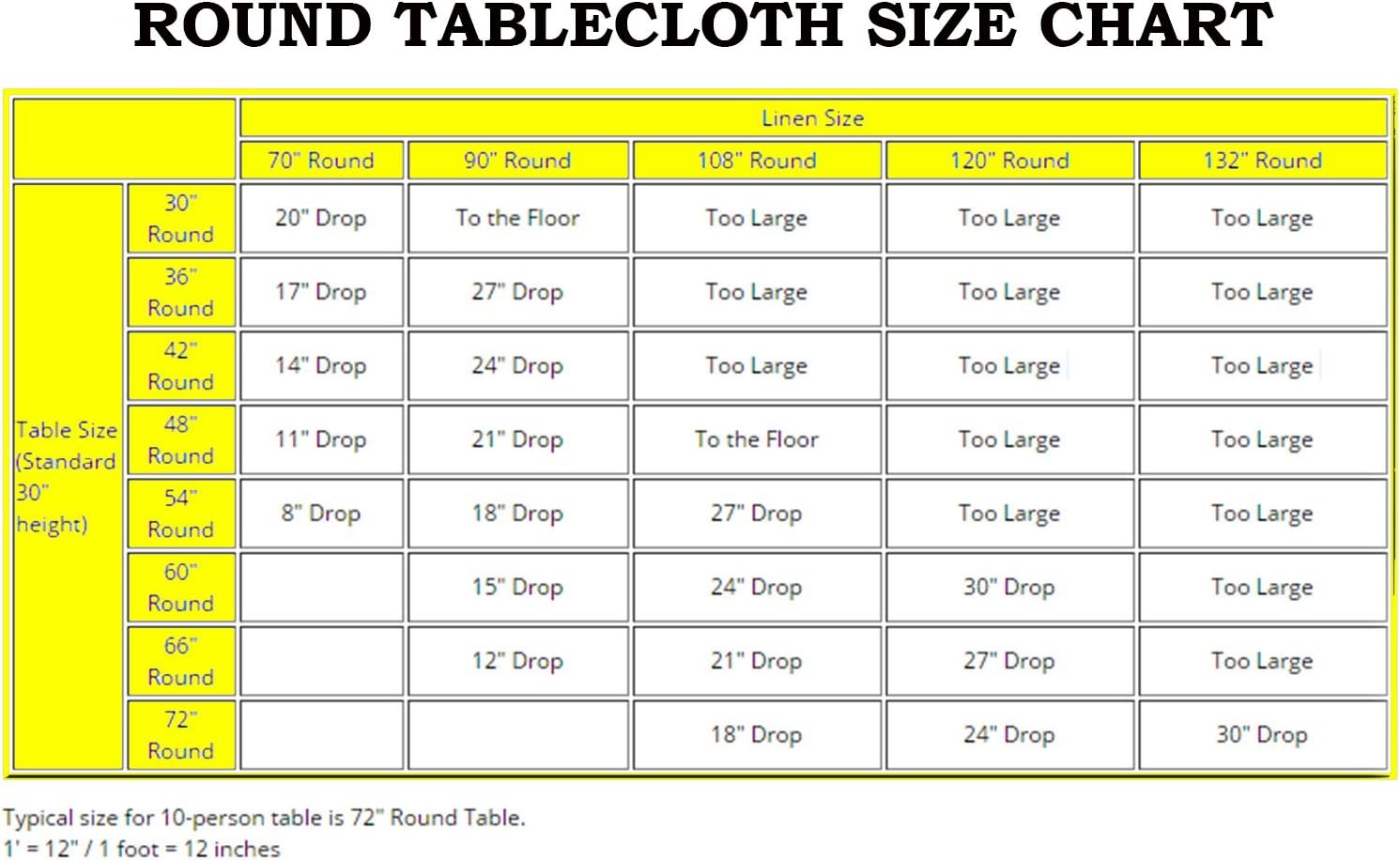 - Specification: Quantity: 1 Tablecloth Material: 100% Polyester Linens Size: 108" Stain & wrinkle resistant Seamless design, 1 pcs design. Perfect to be used on top of our tablecloths as accents. All sizes are approximate measurements How to Care: Warm water wash. Low temp dry. Can be reused again and again, easily over 100 times.