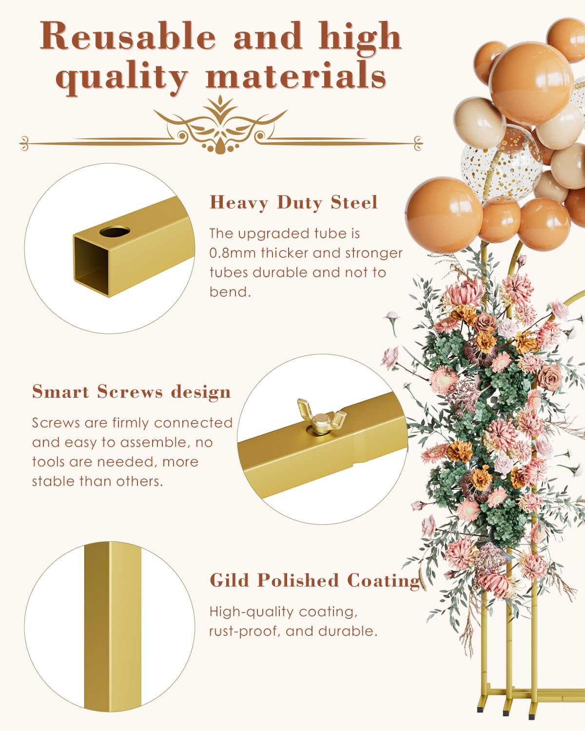 - Wedding Arch Stand: Our set of 3 arch backdrop stand are made of metal which is not easy rust and fading. Designed in a door shape, these arches create an elegant backdrop for any event, such as weddings, birthdays, and receptions. Elevate your special occasion with the exquisite arch stand, personalized with flowers, balloons, and LED lights to enhance the ambiance.